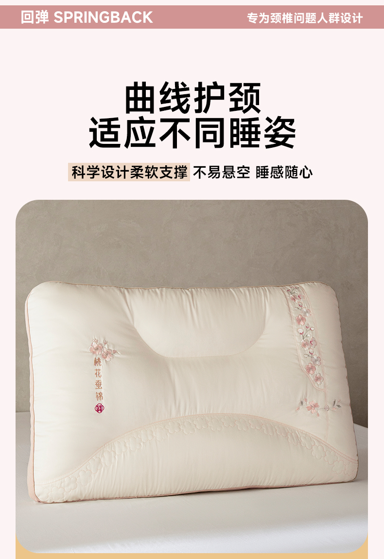 (总)昕科 2025新款锦绣桃花枕-全棉纯棉粉色桃花刺绣枕头枕芯,锦绣桃花枕一对,锦绣桃花枕一只