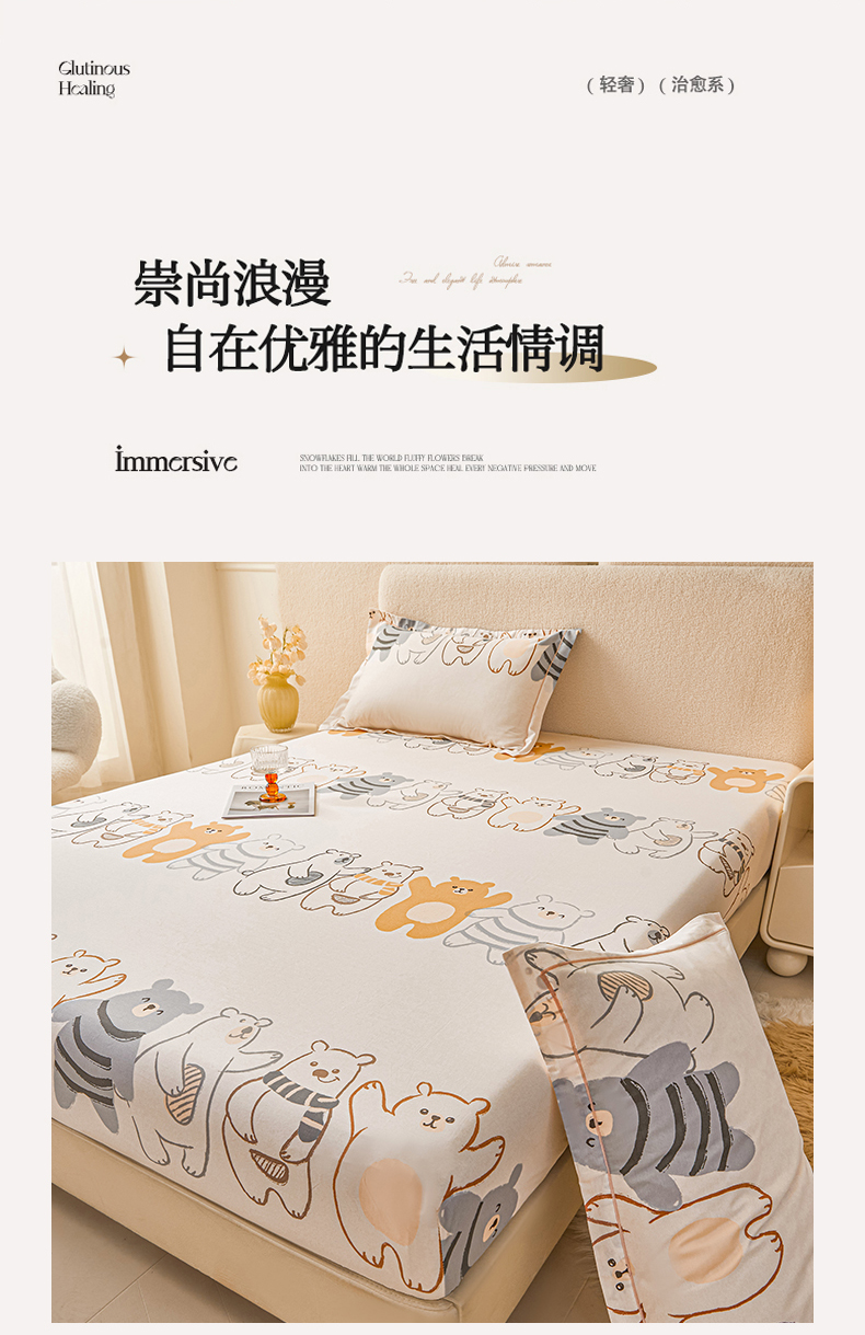 当前位置: 91家纺网 > 商品网购 > 床上用品 > 床笠 > 名优家纺 2026新款纯色高密全棉纯棉床笠单床笠床笠单件 熊派对-米
