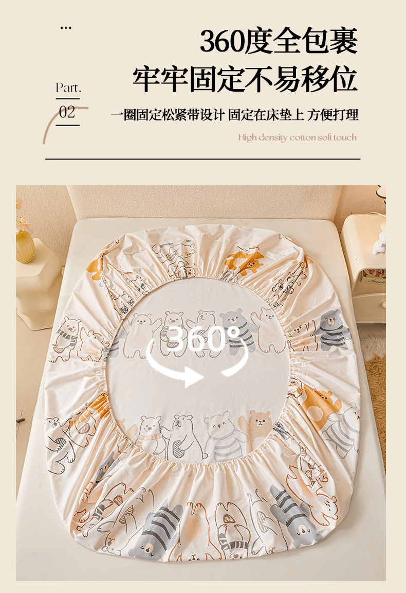 名优家纺 2026新款纯色高密全棉纯棉床笠单床笠床笠单件 熊派对-米