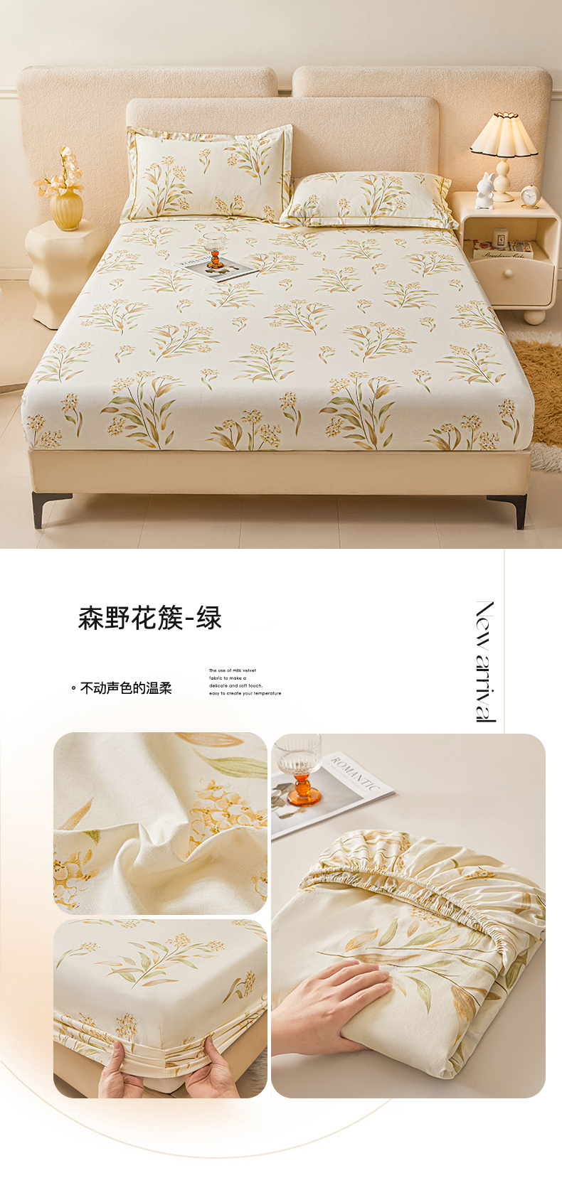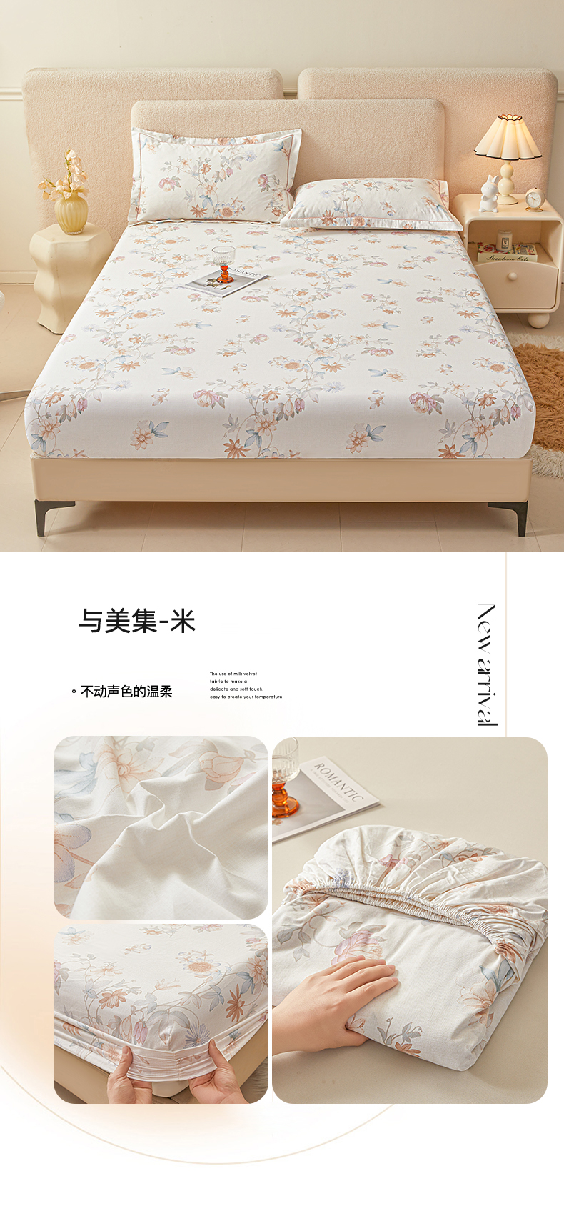 • 91家纺网 家纺一手货源 找家纺 名优家纺 2026新款纯色高密全棉纯棉床笠单床笠床笠单件 熊派对-米