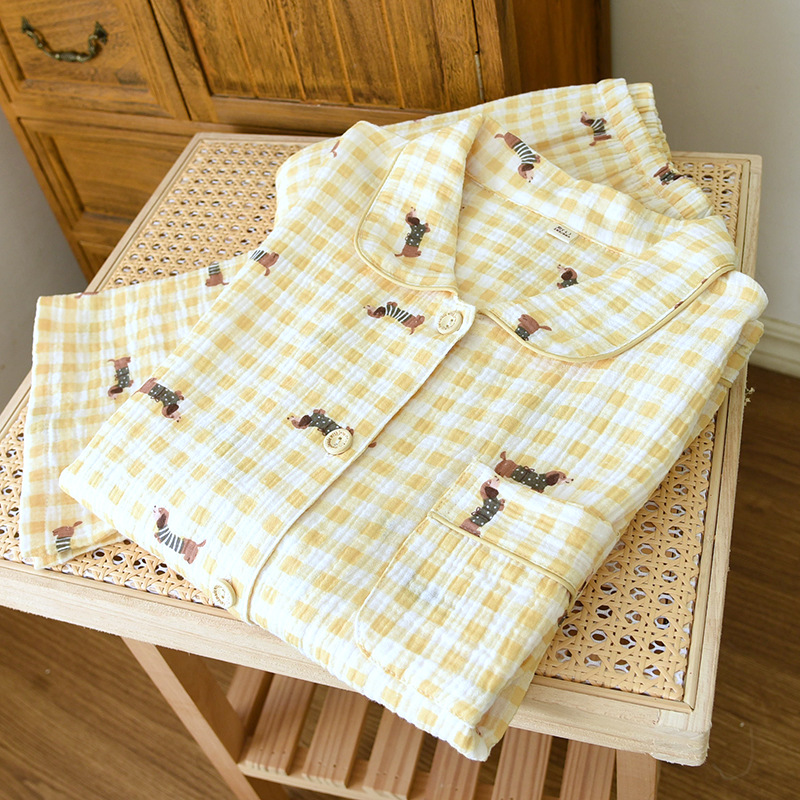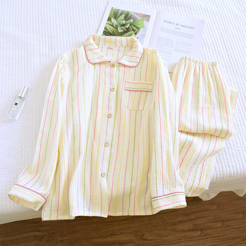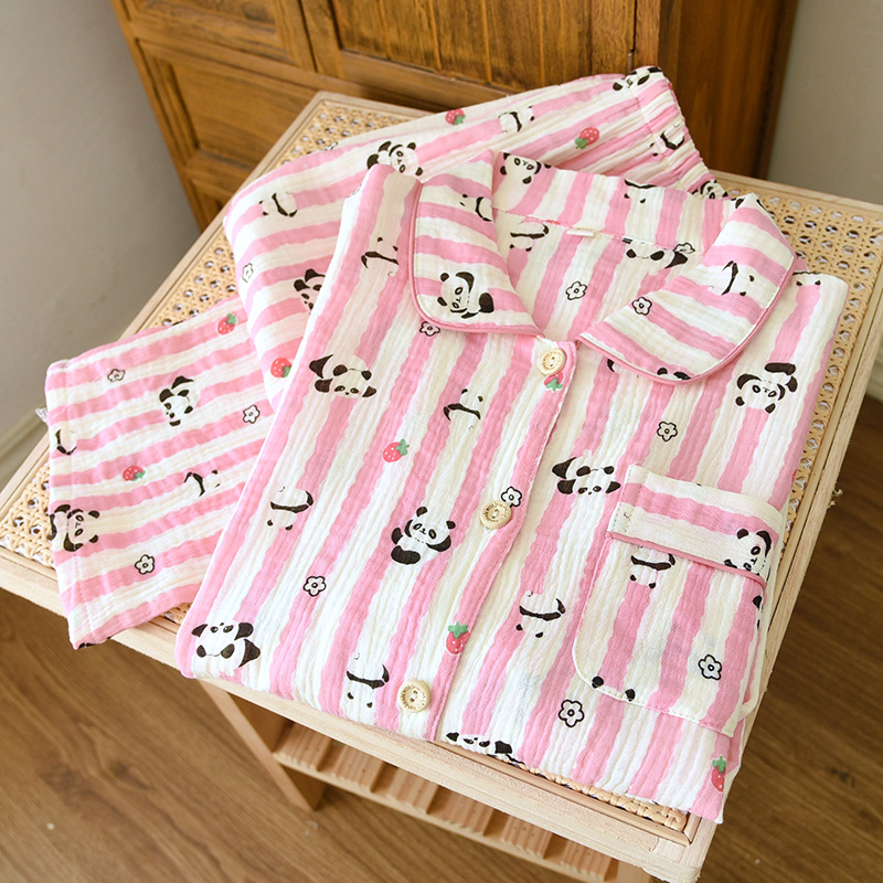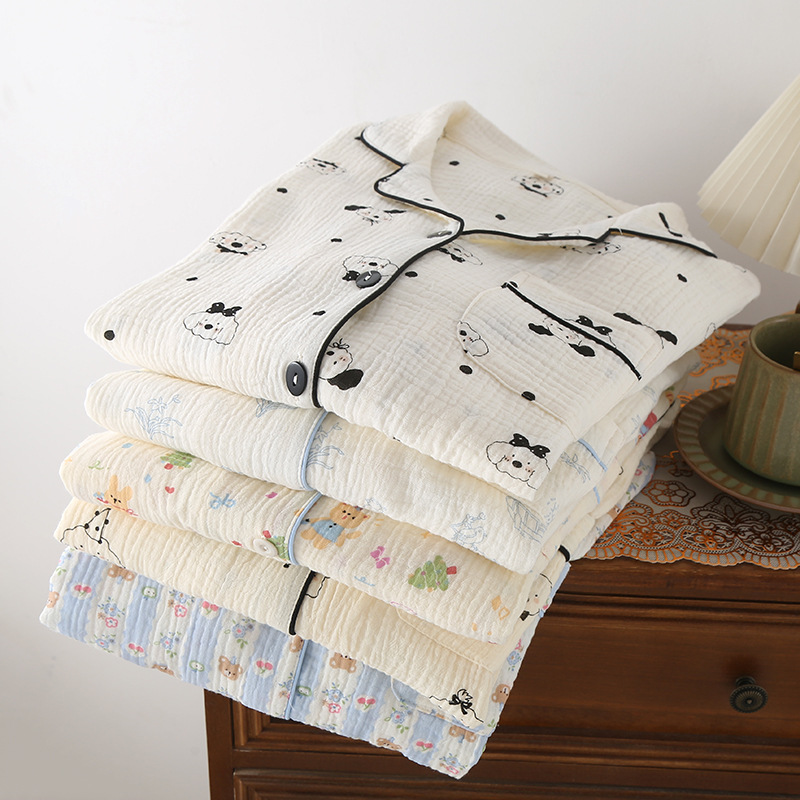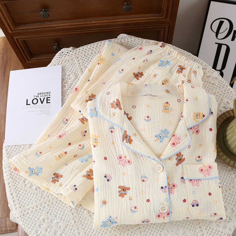 商品名称:(总)洛兰沙家居馆 2025新款双层绉纱棉纱卡通系列女士家居服睡衣长袖长裤透气舒适四季款纯棉
