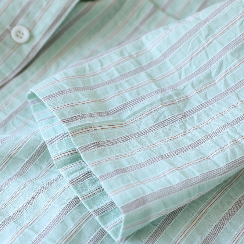 (总)洛兰沙家居馆 2025新款【松木】男士长袖长裤套装日系简约家居服全棉双层色织提花棉纱款,松木-灰色