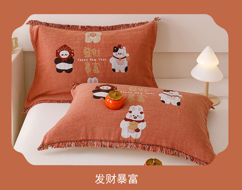 (总)麻依 2025新款四层纱布全棉新年大红枕巾流苏婚庆枕盖,八方来财,发财暴富,福禄,福气满满,福娃,公主发财,好运,锦鲤,马上有钱,平安喜乐,圣诞小猫,新年快乐,组合