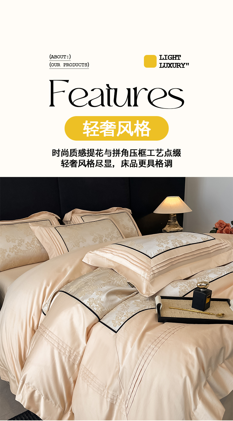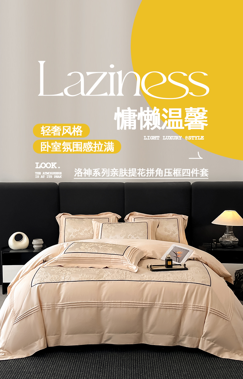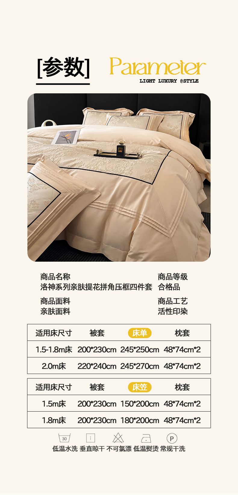 当前位置: 91家纺网 > 商品网购 > 床品套件 > 四件套 > 其它四件套 > 置顶家纺 2025新款洛神系列亲肤提花拼角压框四件套 洛神-浅香槟