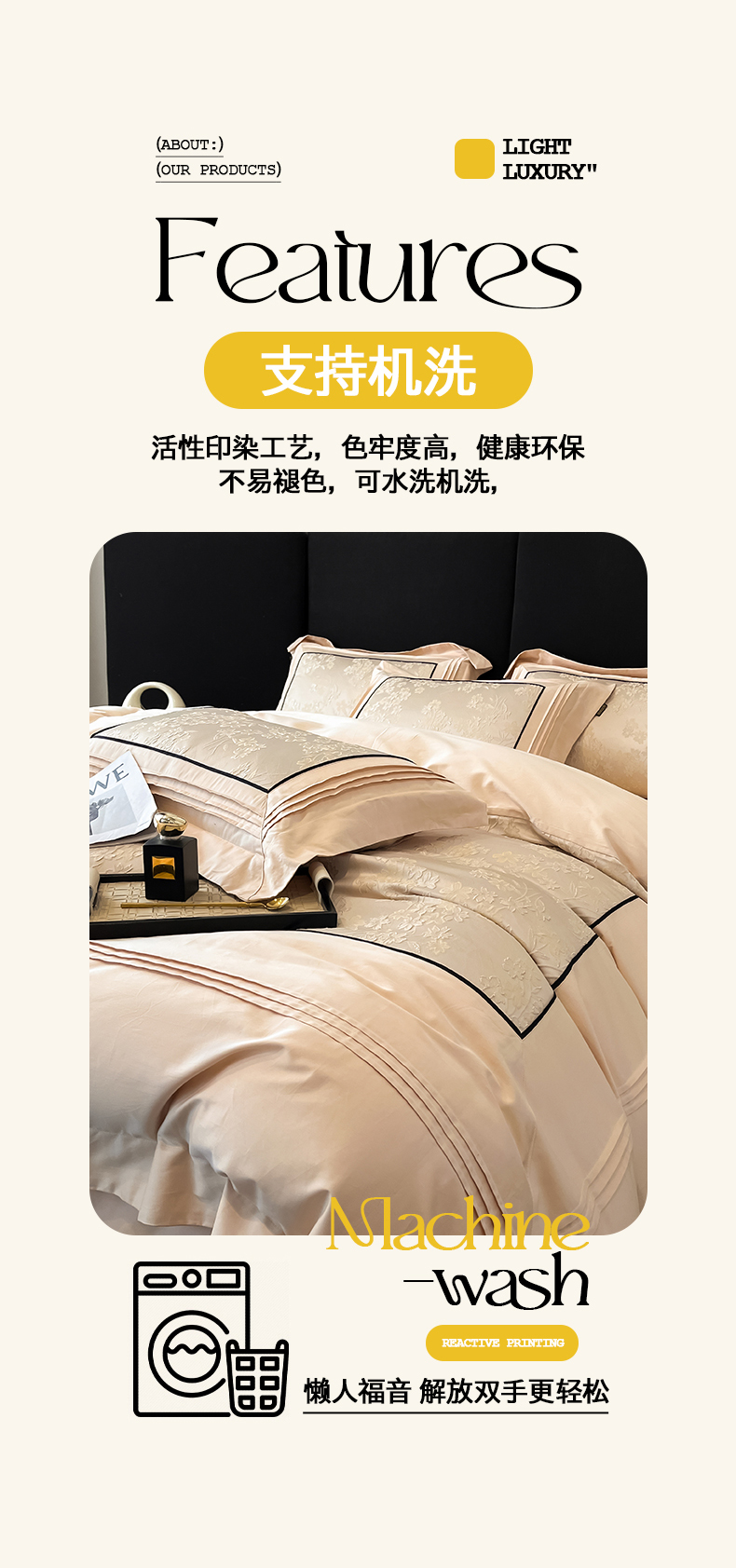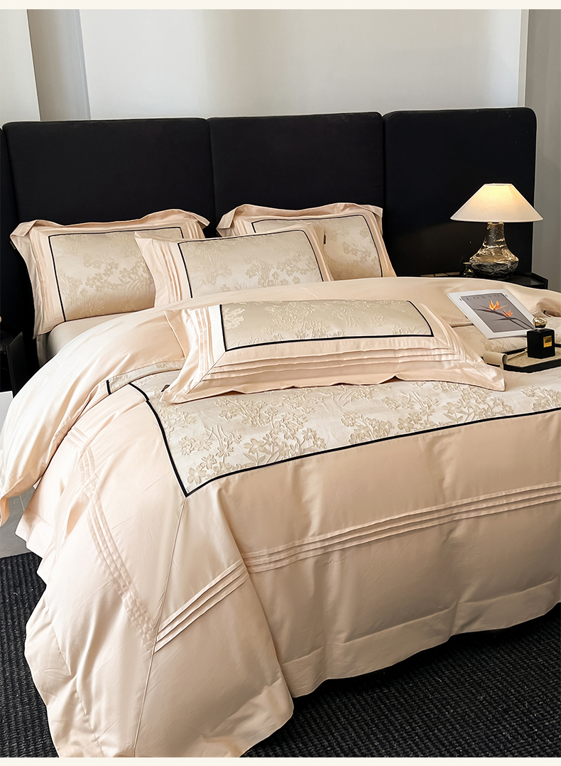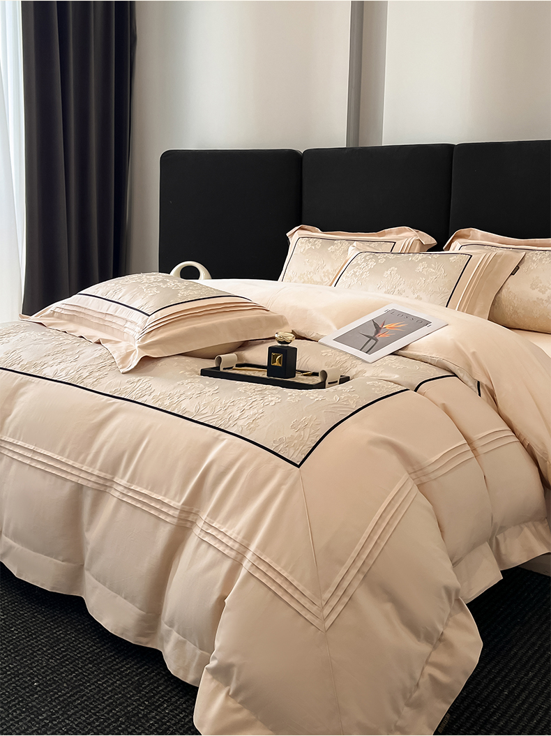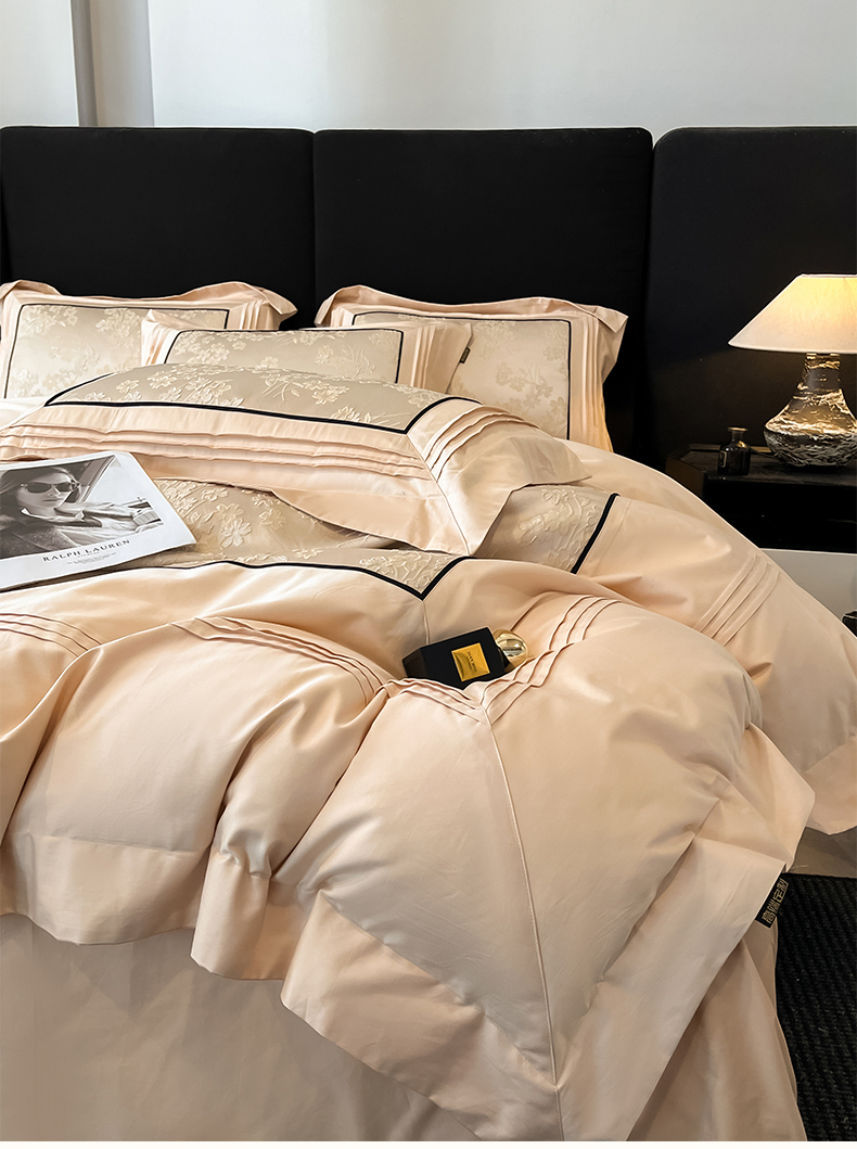 当前位置: 91家纺网 > 商品网购 > 床品套件 > 四件套 > 其它四件套 > 置顶家纺 2025新款洛神系列亲肤提花拼角压框四件套 洛神-浅香槟