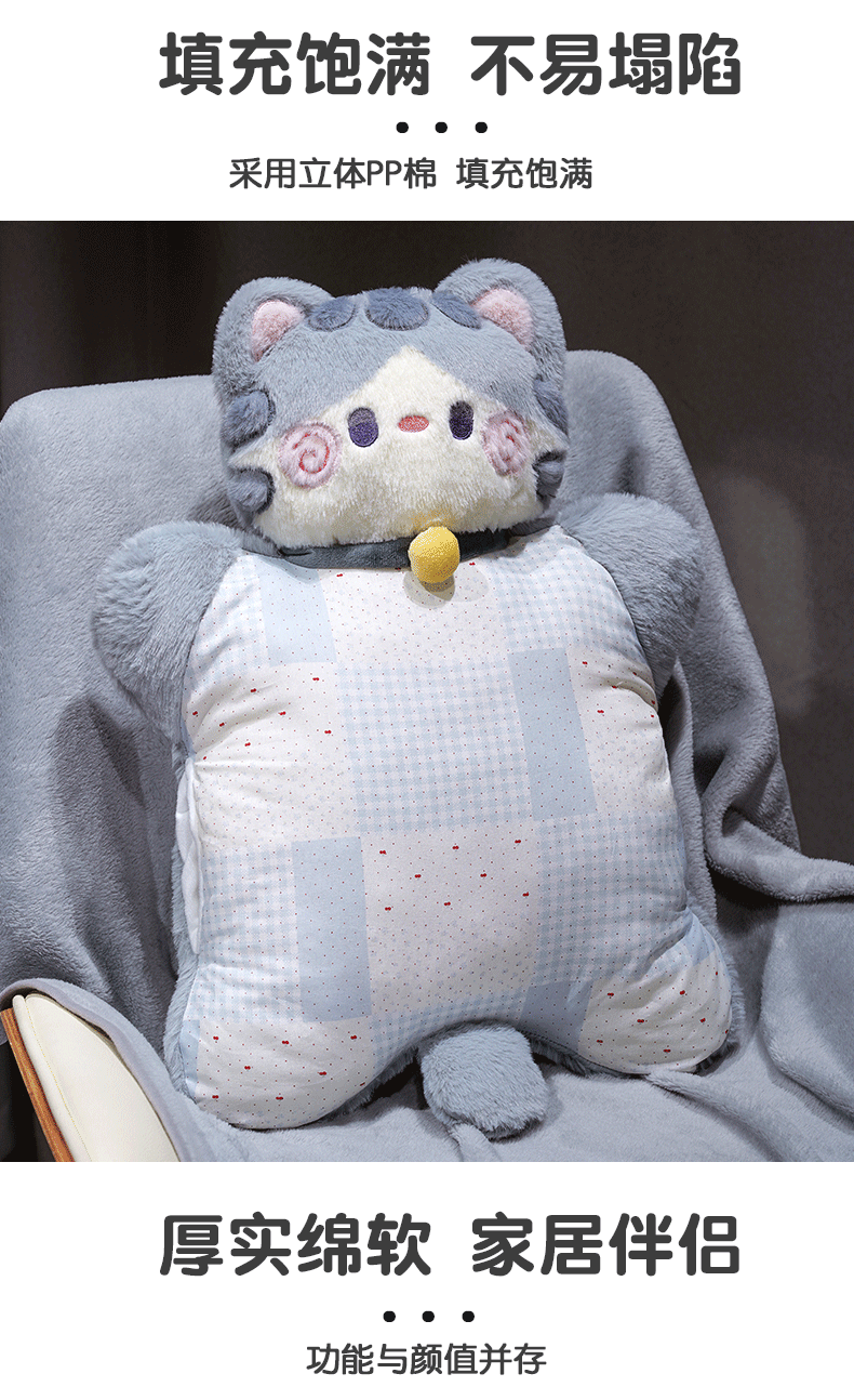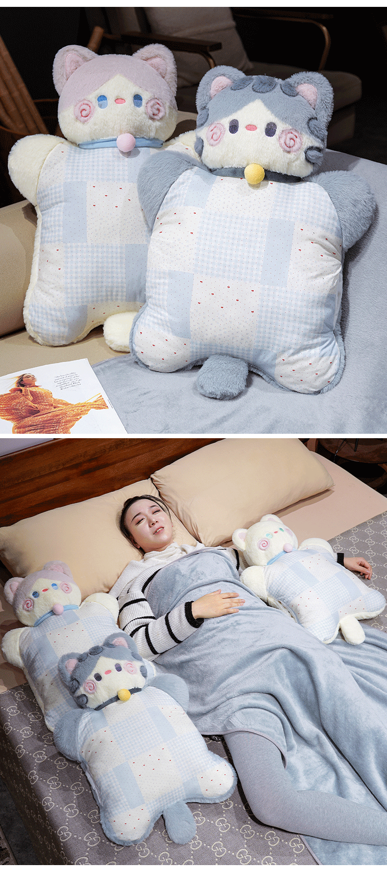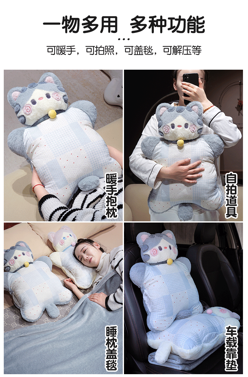 (总)仟亿莱 2025新款抱抱猫豆袋三用玩偶抱枕,组合图仅做展示不可下单,三用白猫,三用灰猫,三用奶咖猫