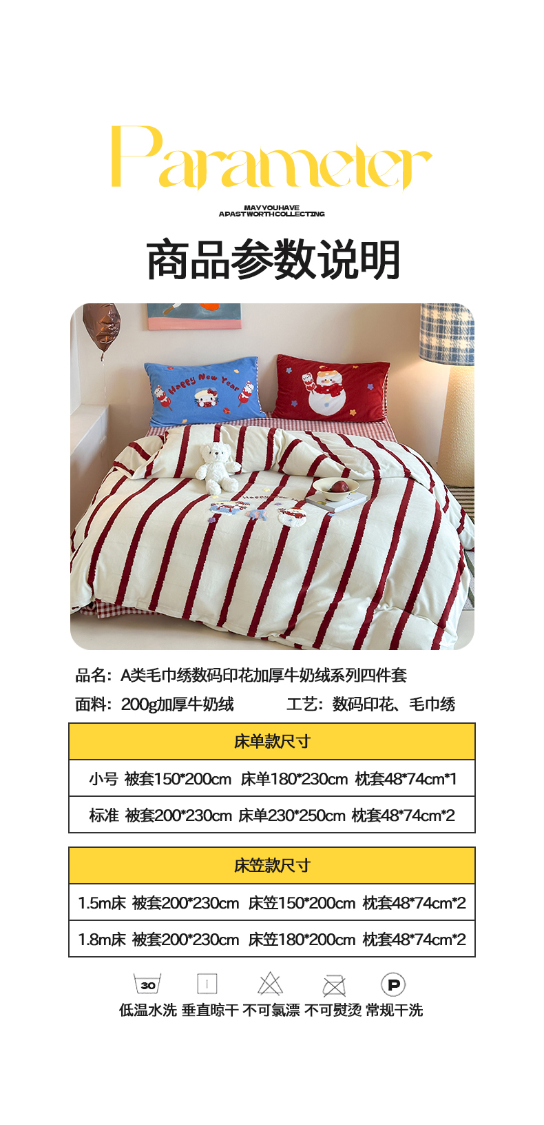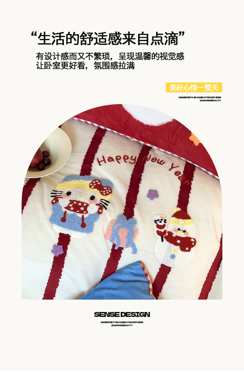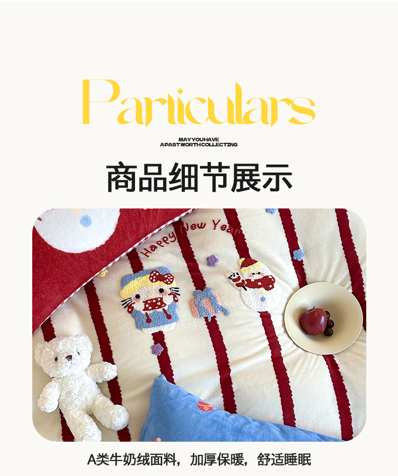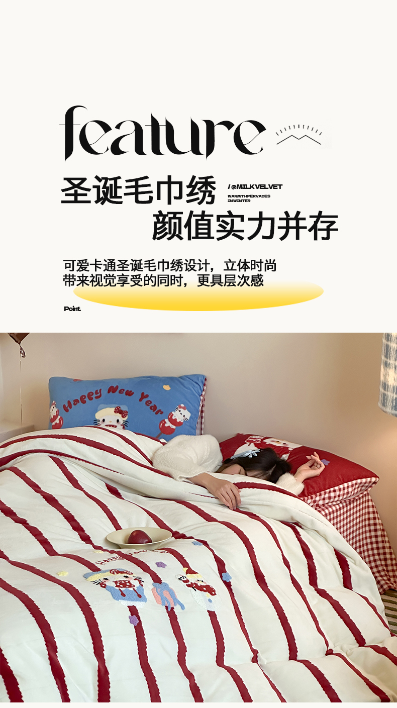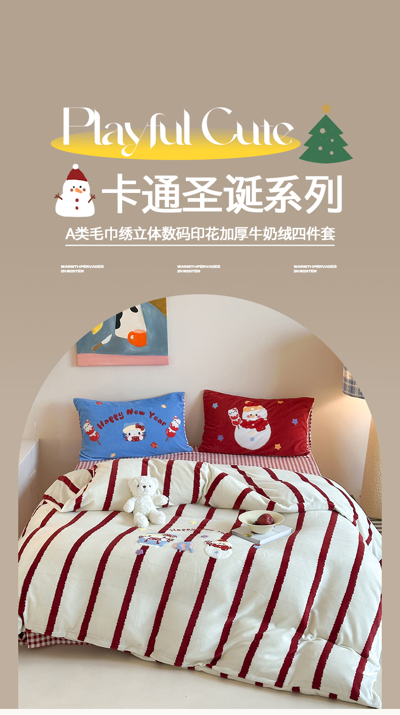 当前位置: 91家纺网 > 商品网购 > 床品套件 > 四件套 > 牛奶绒四件套 > 桃子家居 2025新款A类毛巾绣立体数码印花可爱卡通圣诞印加绣加厚牛奶绒系列四件套 绒印加绣-福运猫咪