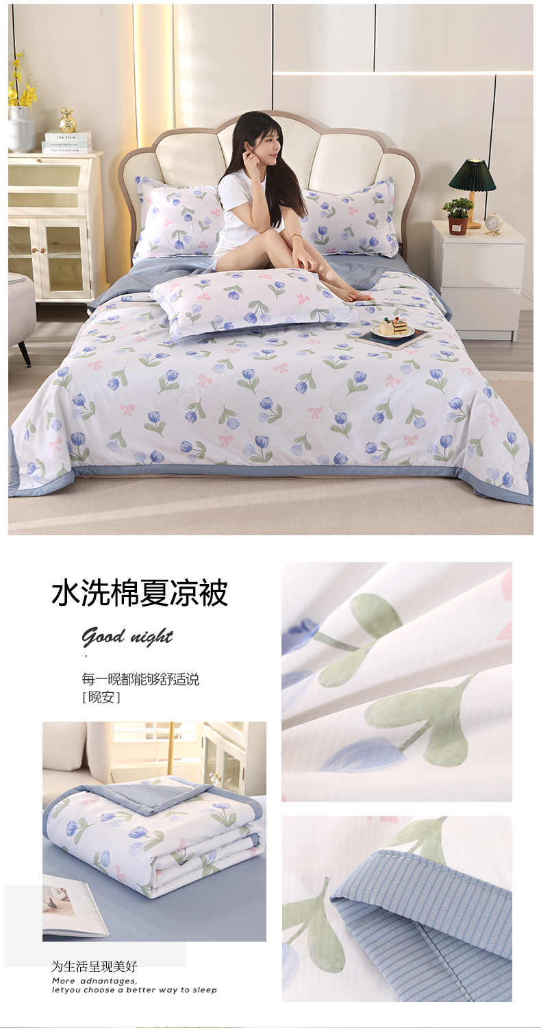 延遥 2026新款亲肤水洗棉夏被夏凉被夏被四件套 郁金香,郁金香