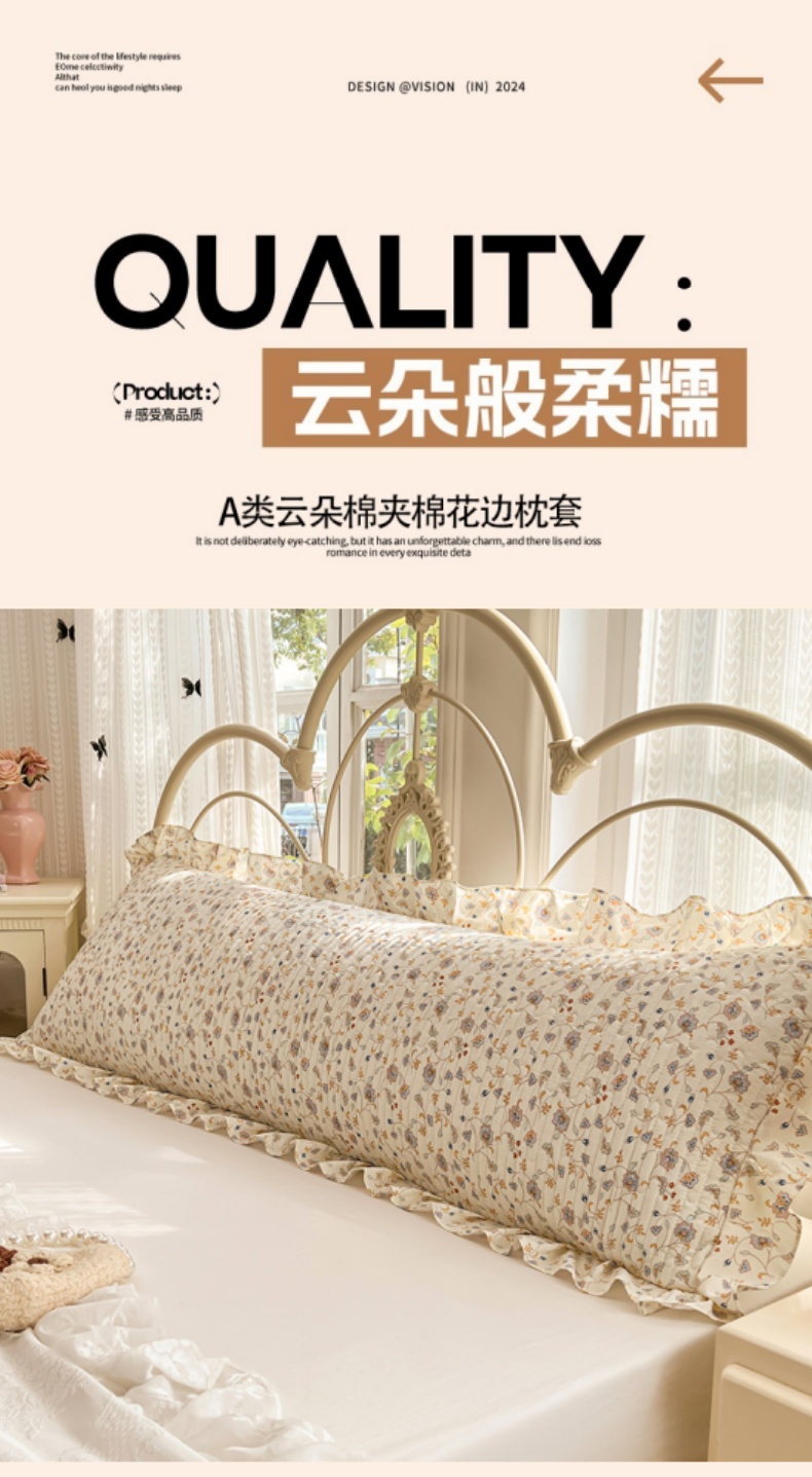 • 91家纺网 家纺一手货源 找家纺 圣比熊 2026新款A类云朵棉夹棉花边枕套宿舍情侣双人加长枕芯内胆套-双人枕套 花蔓清风(花边夹棉)