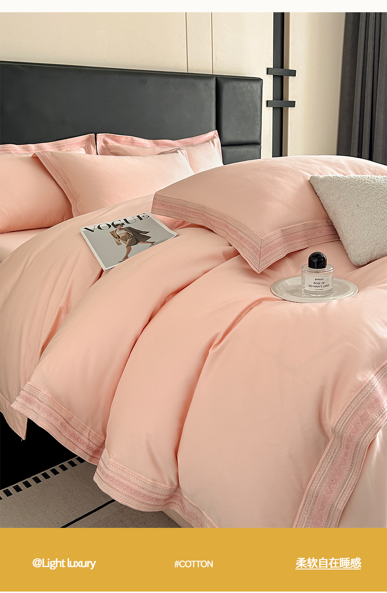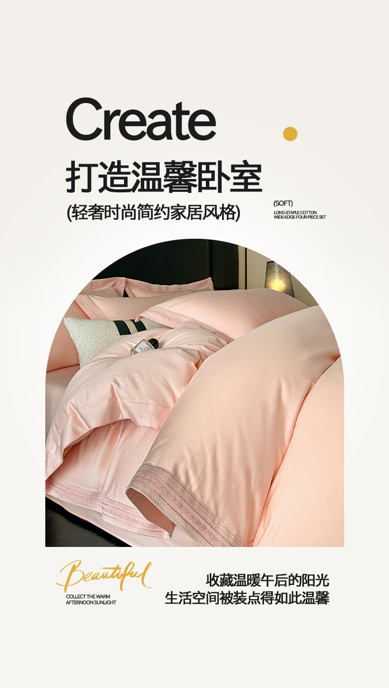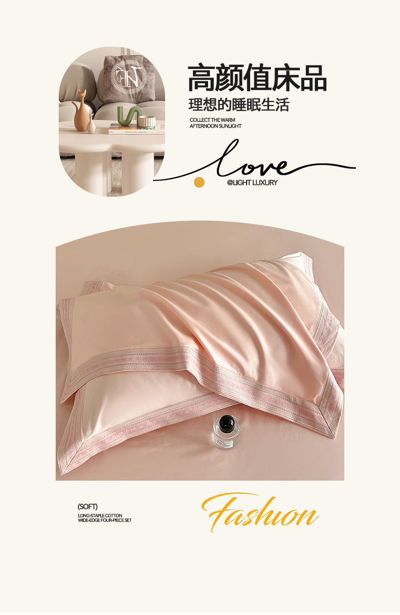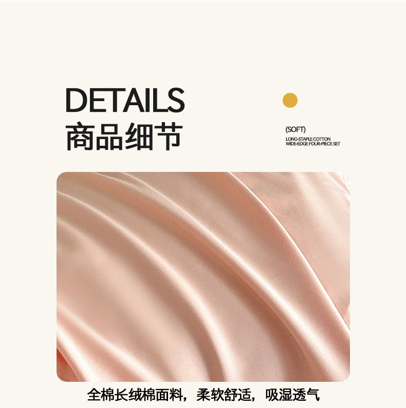 当前位置: 91家纺网 > 商品网购 > 床品套件 > 四件套 > 长绒棉四件套 > 置顶家纺 2025新款50双股支长绒棉纯棉宽边四件套-米西雅 米西雅-玉色