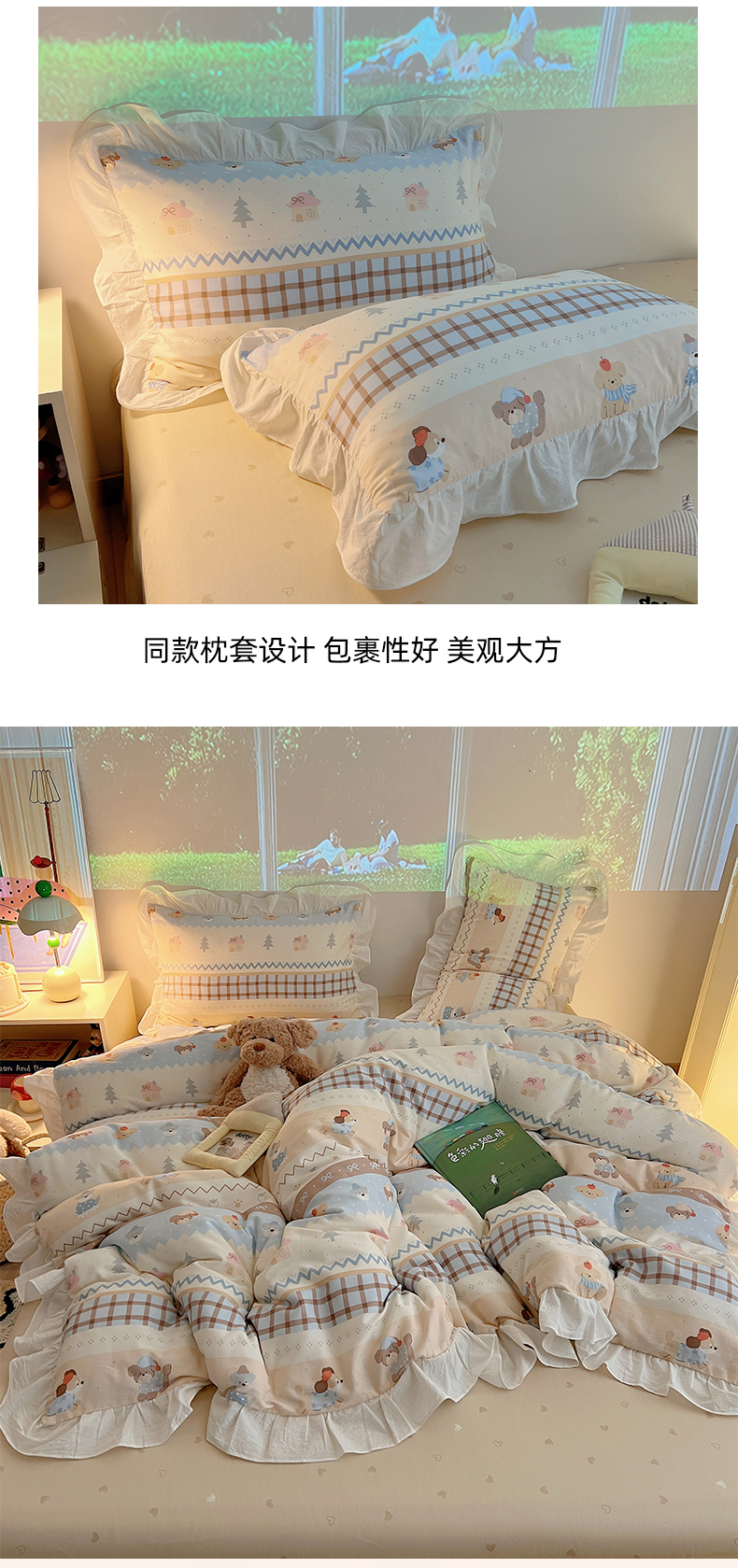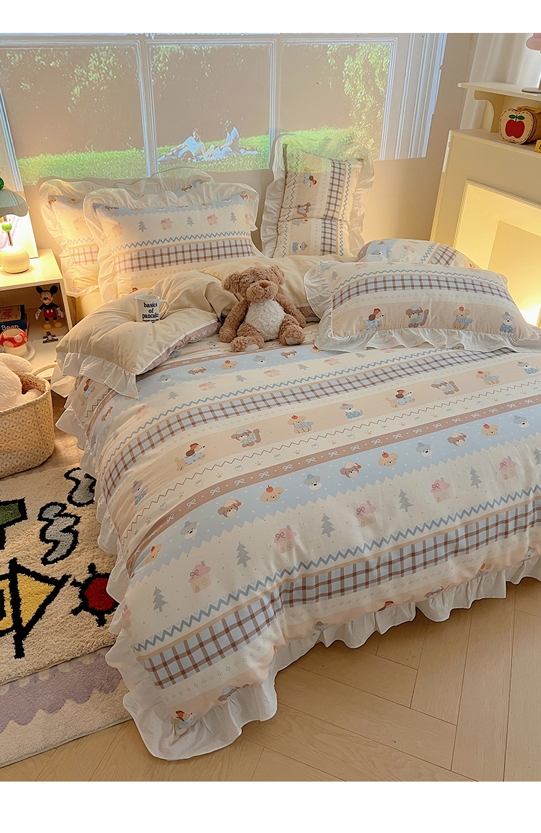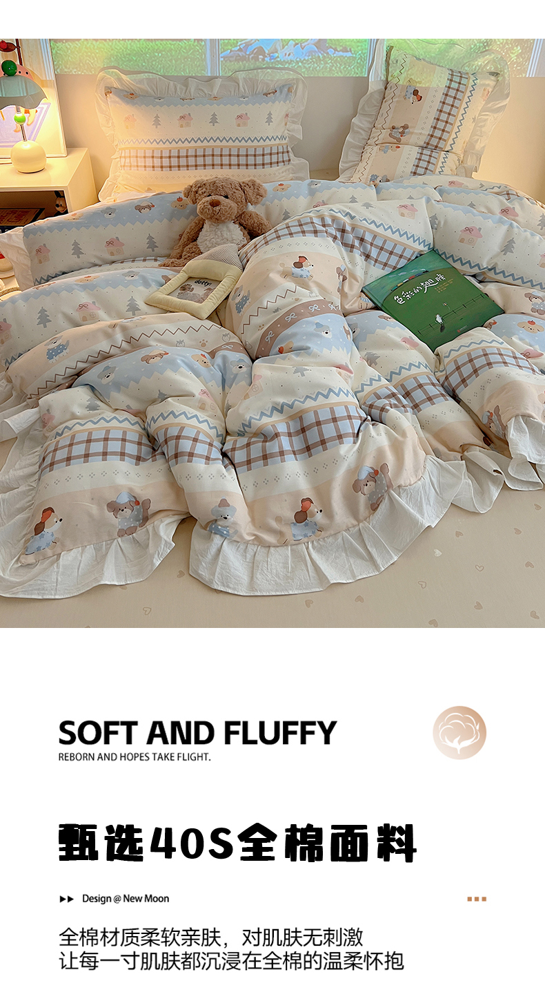 六巷胡同 2026春夏新款韩系花边款卡通全棉四件套(第二系列)风格一 花边费尔岛狗狗