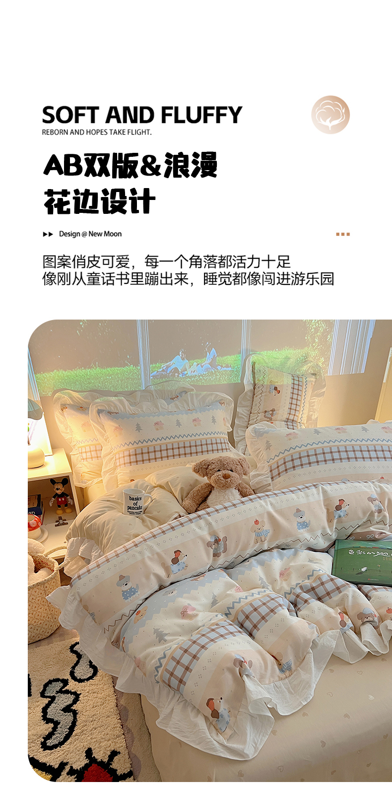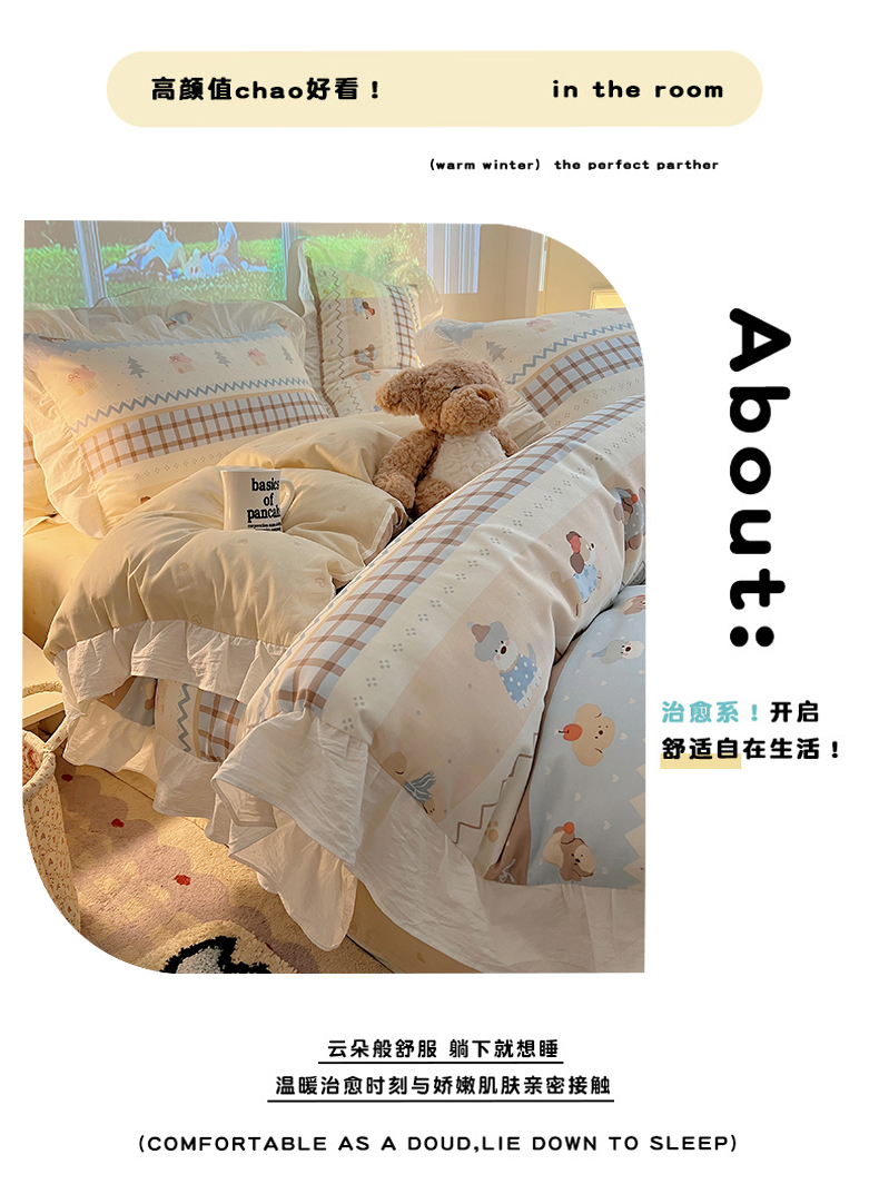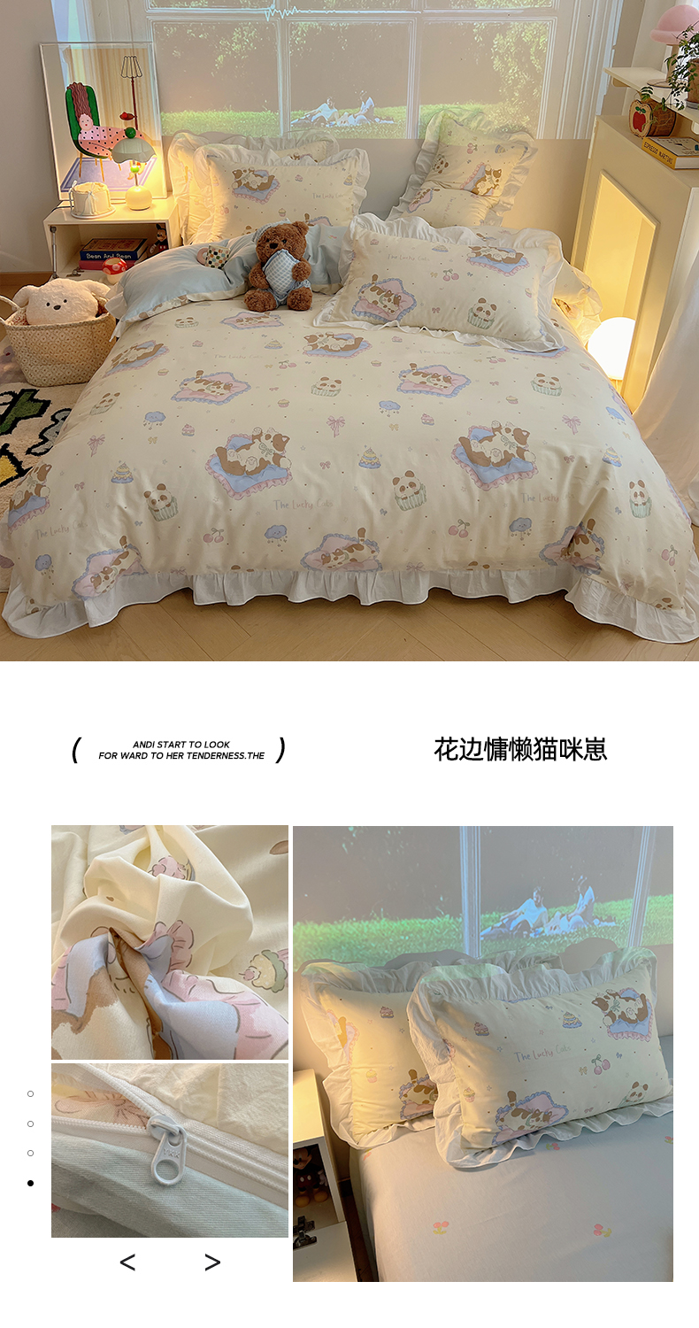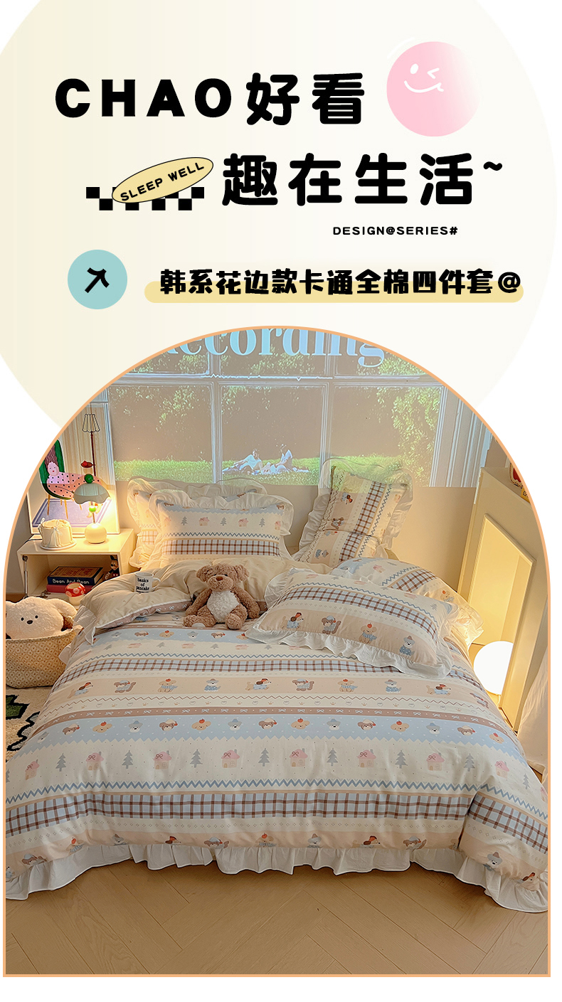 (总)六巷胡同 2025新款韩式INS卡通减龄花边款全棉四件套(第三系),花边波点嘟嘟猫,花边点点面包犬,花边调皮蔷薇狗,花边法棍滑板狗,花边粉格元气猫,花边哈喽泡芙猫,花边蓝格邦尼熊,花边蓝格插画犬,花边泡芙萌趣狗,花边森林音乐会,花边仙人掌粉象,花边熊熊猫咪崽,花边郁金香狗狗