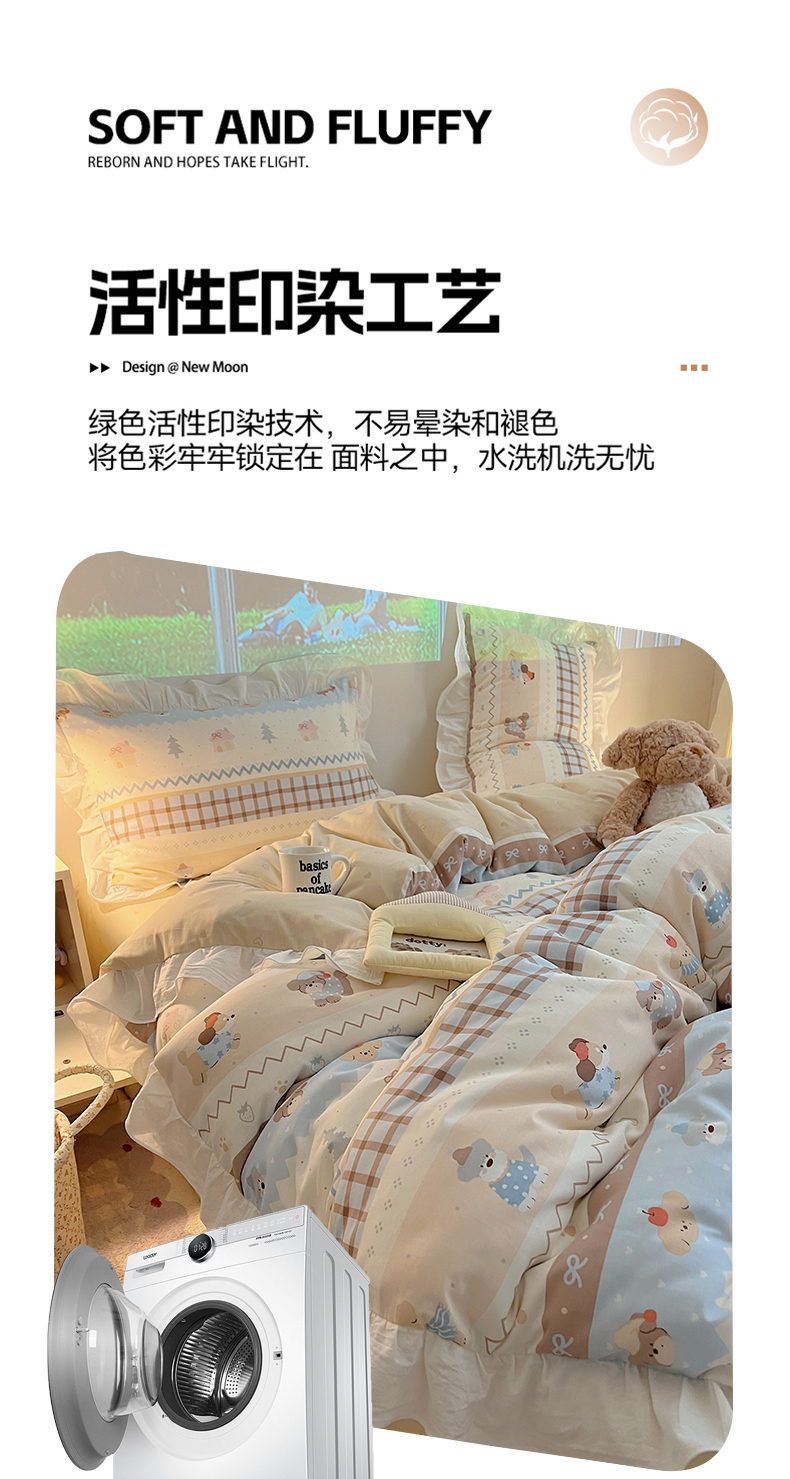 商品名称:六巷胡同 2026春夏新款韩系花边款卡通全棉四件套(第二系列)风格一 花边费尔岛狗狗