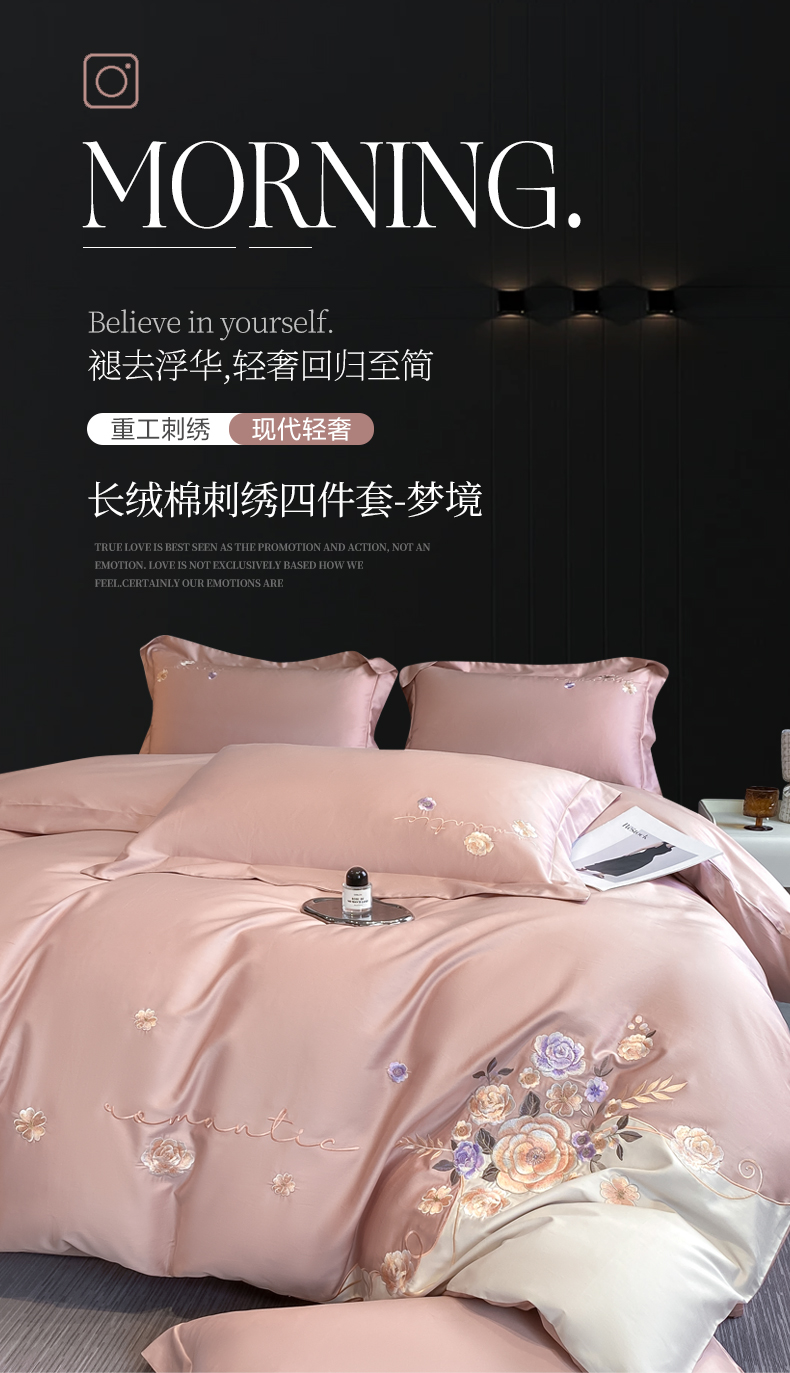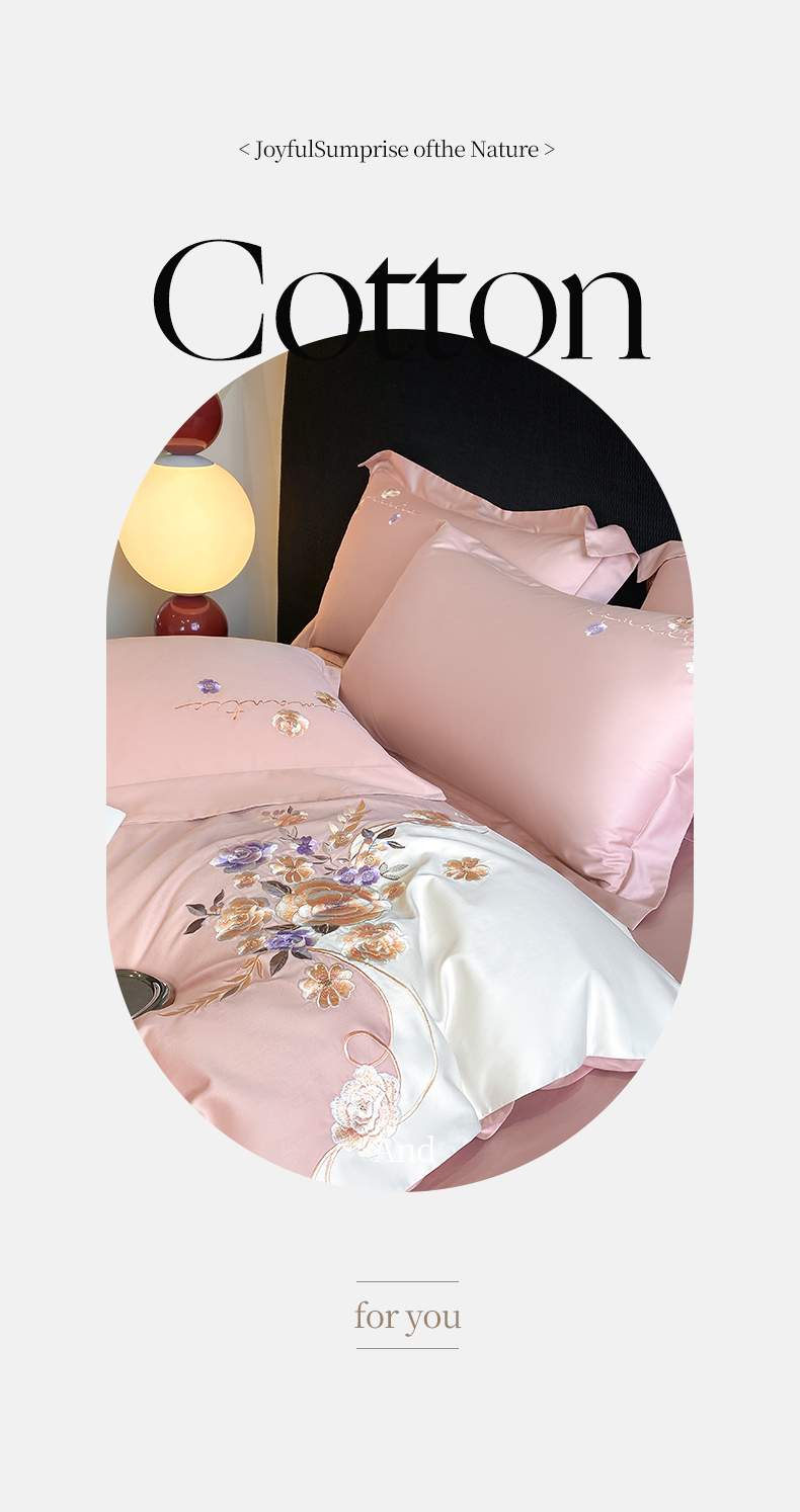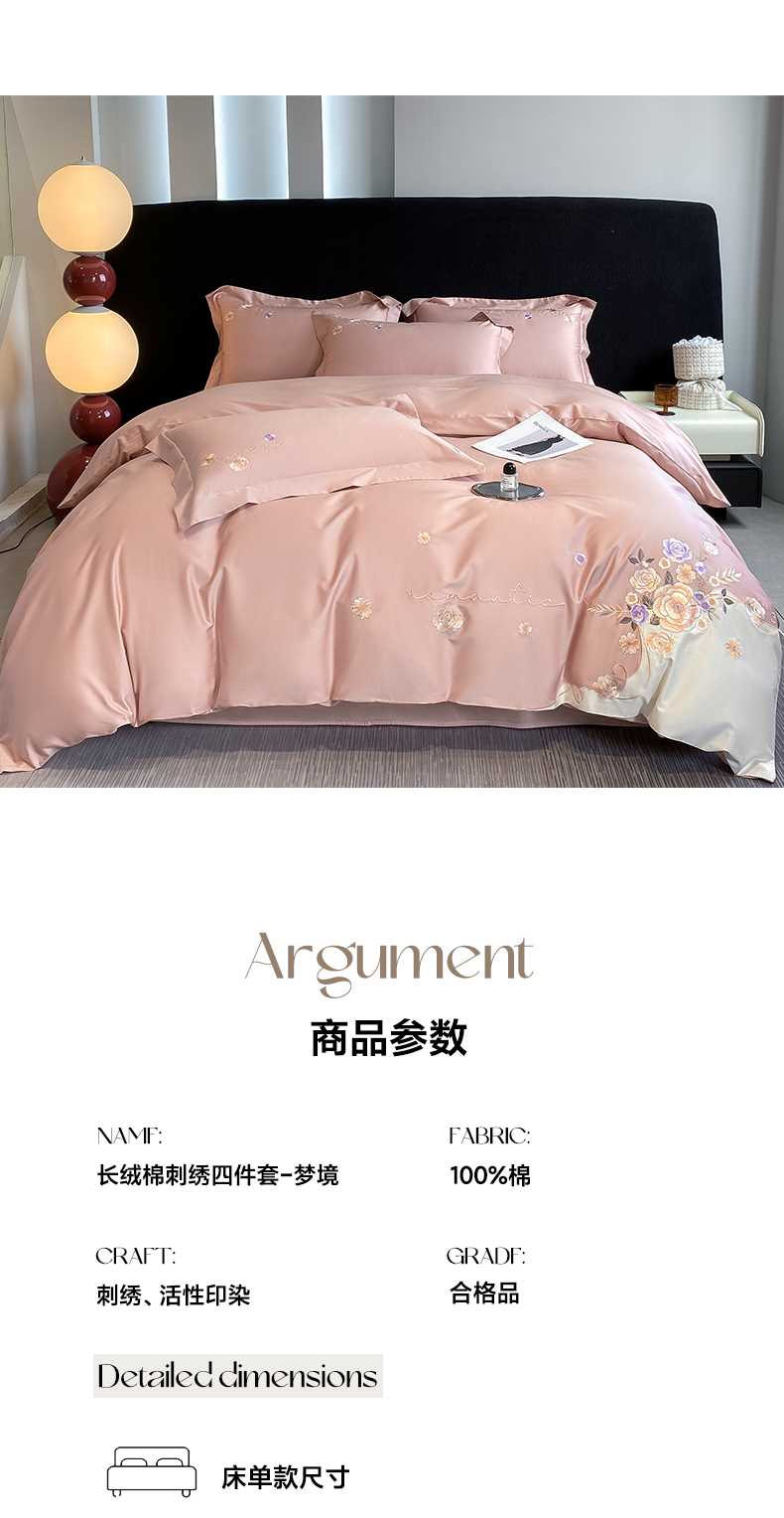 商品名称:欣宜家纺 2025新款纯棉全棉长绒棉刺绣绣花高端礼盒四件套-梦境 梦境轻奢粉