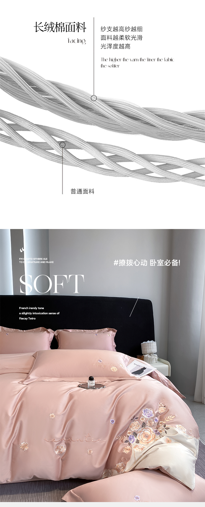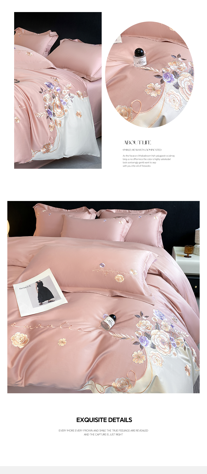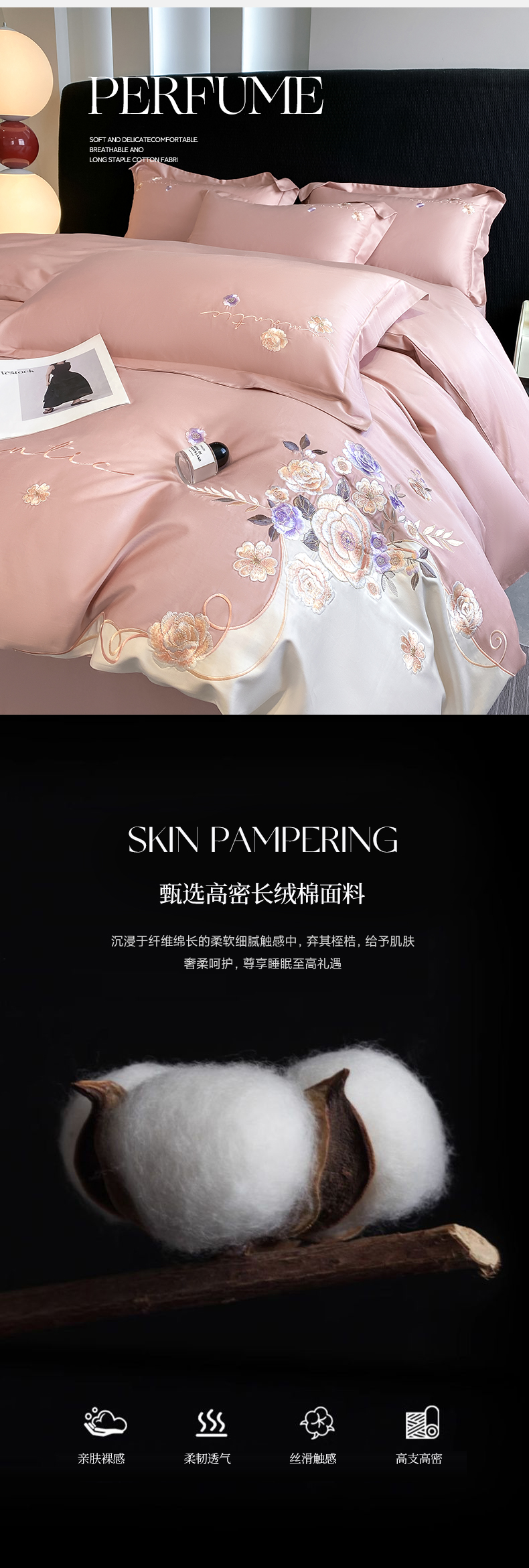 商品名称:欣宜家纺 2025新款纯棉全棉长绒棉刺绣绣花高端礼盒四件套-梦境 梦境轻奢粉