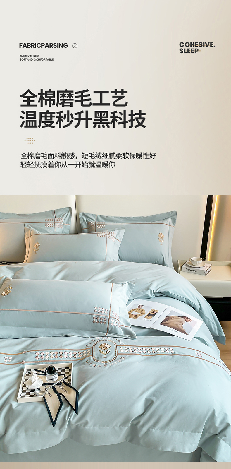 欣宜家纺 2025新款纯棉全棉长绒棉磨毛绣花四件套克里斯系列刺绣套件带礼盒 克里斯-飘蓝