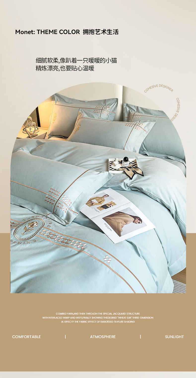 (总)欣宜家纺 2026春夏新款60支A类新疆长绒棉刺绣全棉四件套纯棉床品套件,玛丽-香芋紫,玛丽-梦幻蓝,玛丽-奶白,玛丽-轻奢粉,玛丽-石灰