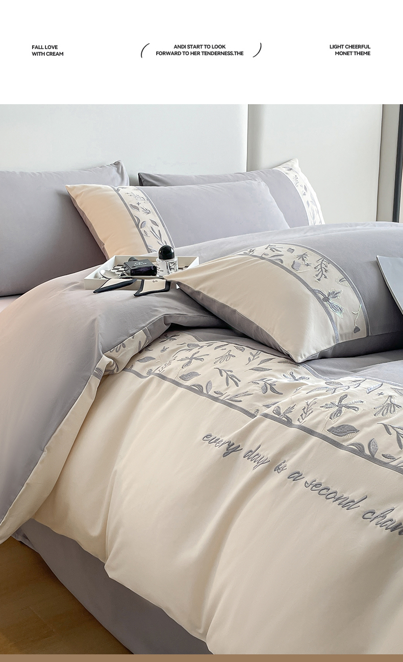 欣宜家纺 2025新款纯棉全棉长绒棉磨毛绣花四件套花漾系列刺绣套件带礼盒 绅士灰