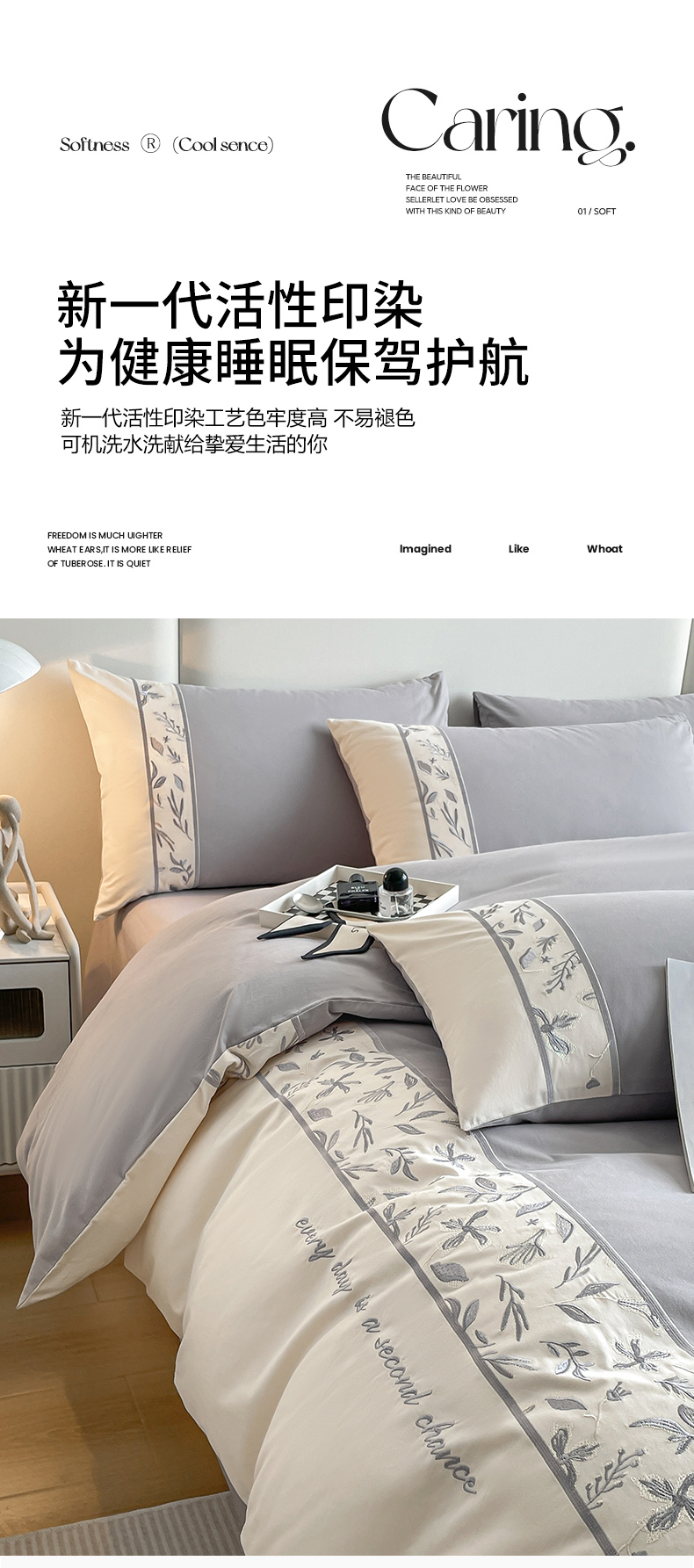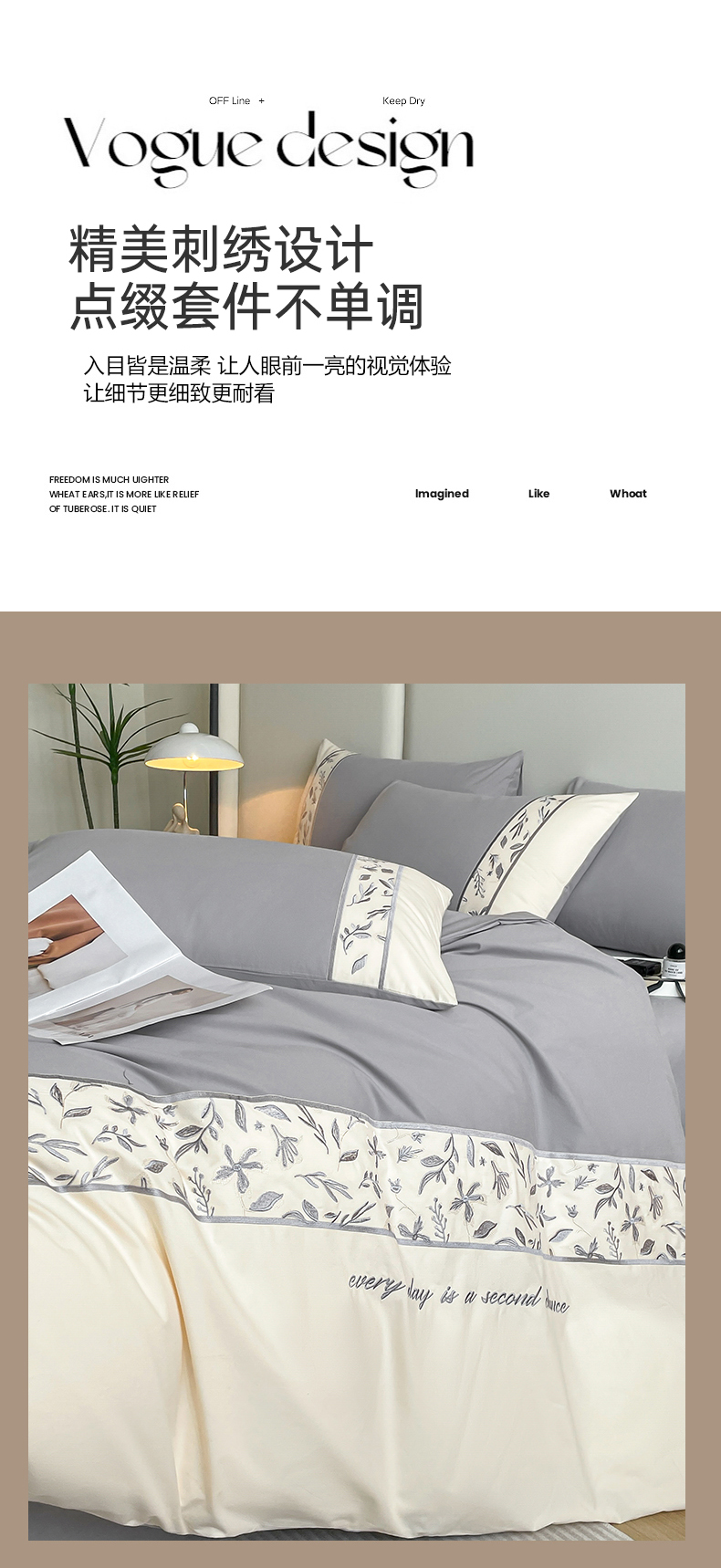 商品名称:欣宜家纺 2025新款纯棉全棉长绒棉磨毛绣花四件套花漾系列刺绣套件带礼盒 绅士灰