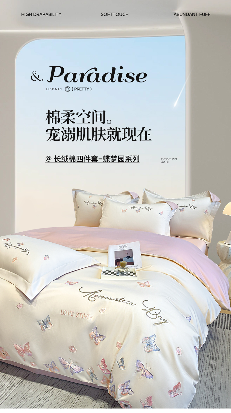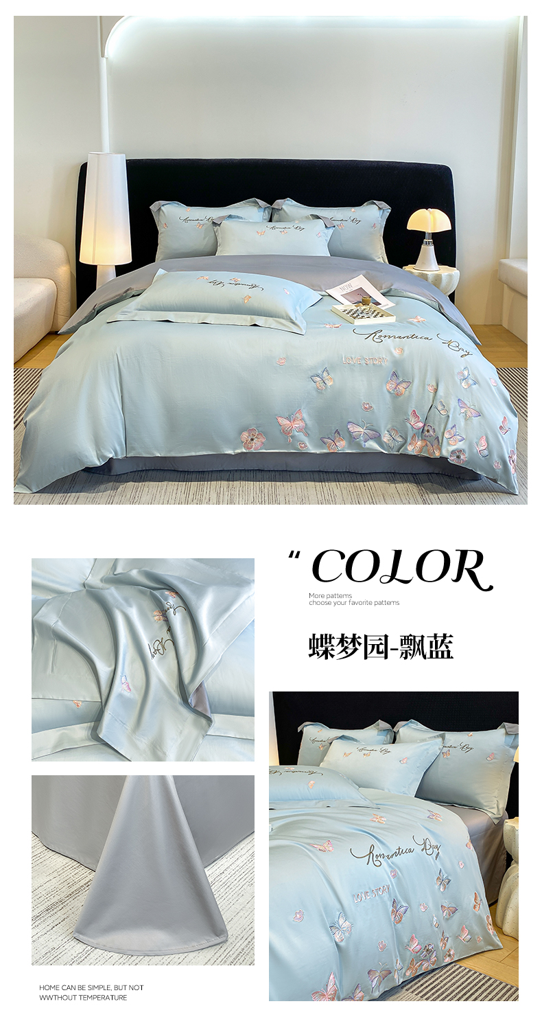 (总)欣宜家纺 2026春夏新款A类60支长绒棉刺绣四件套--蝶纷飞系列,蝶纷飞-粉,蝶纷飞-紫,蝶纷飞-蓝,蝶纷飞-绿