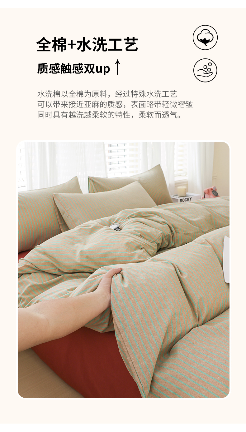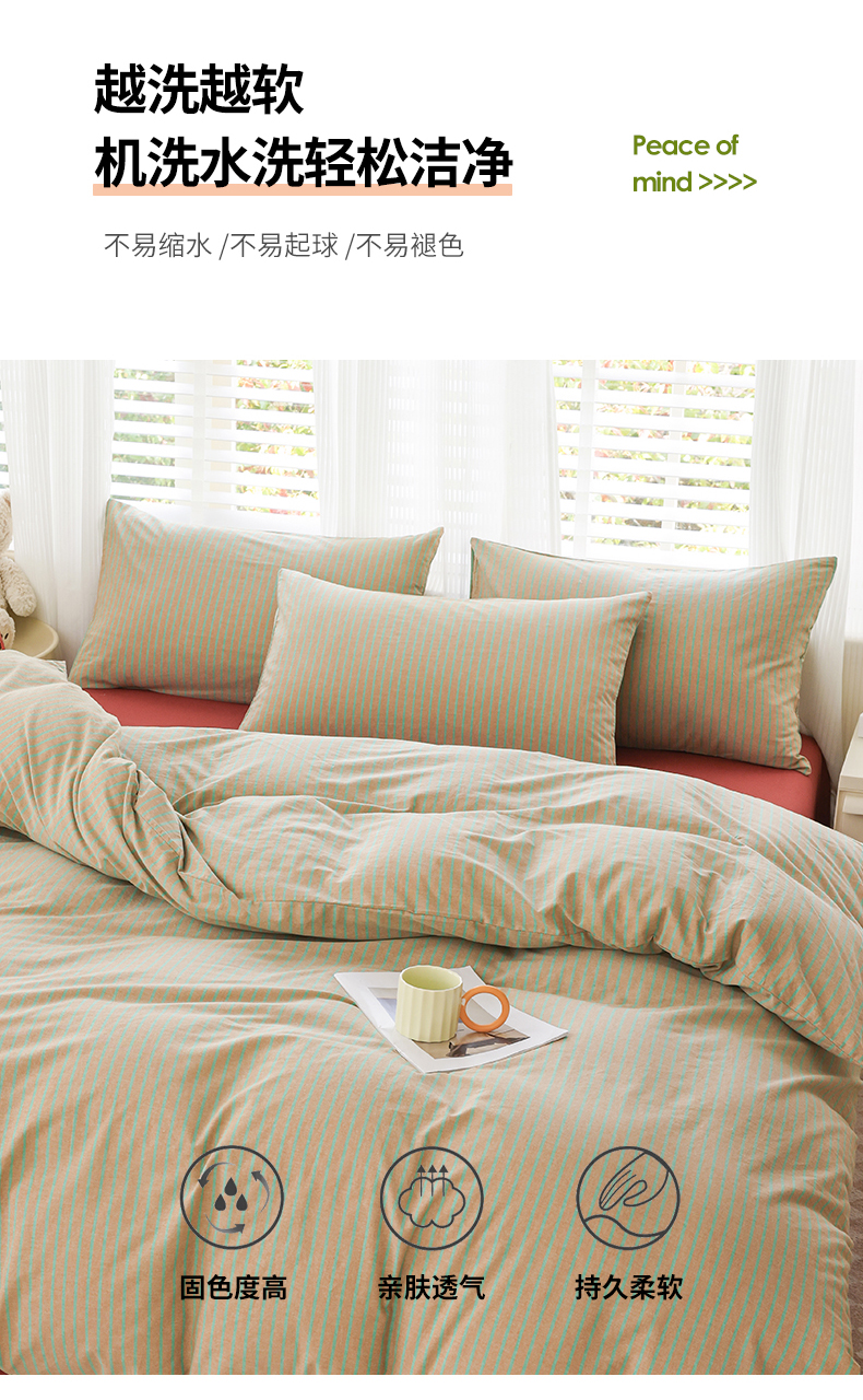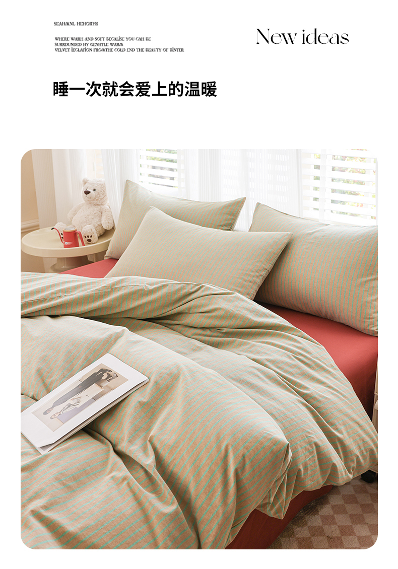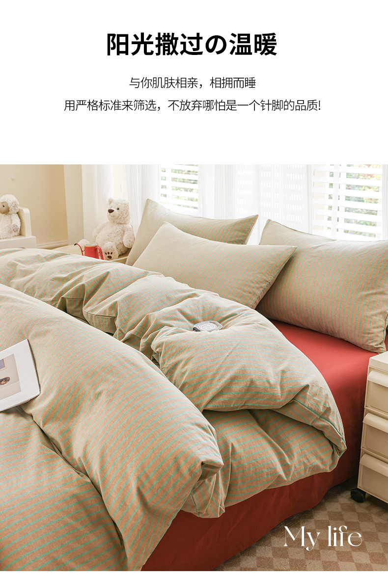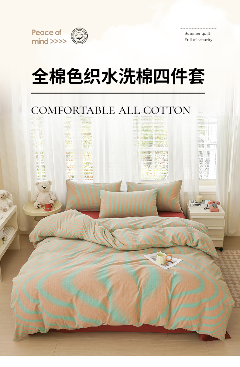 当前位置: 91家纺网 > 商品网购 > 床品套件 > 四件套 > 水洗棉四件套 > 柠萌家居 2026新款色织水洗棉四件套单被套 驼红条