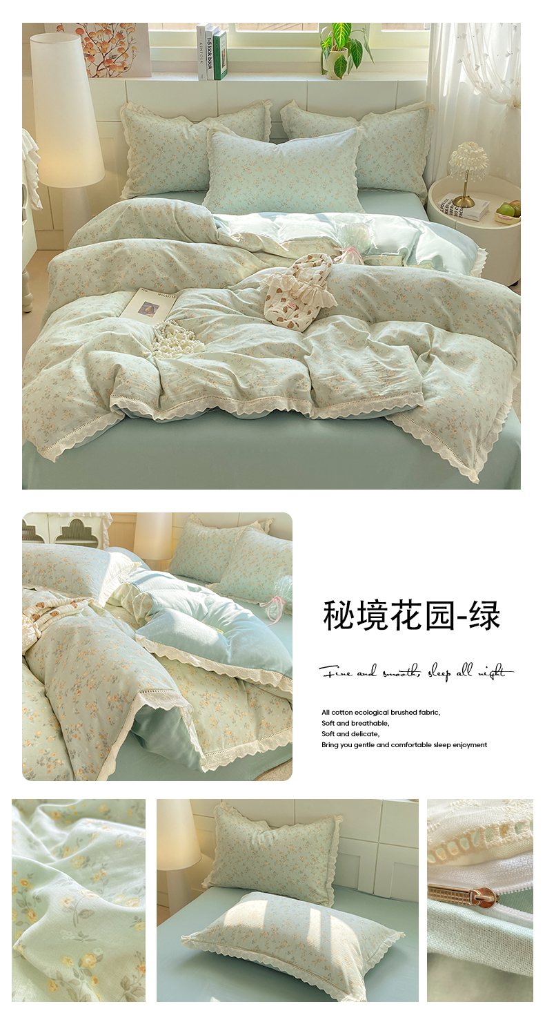 当前位置: 91家纺网 > 商品网购 > 床品套件 > 四件套 > 全棉普通四件套 > 红淳家纺 2026新款全棉A类双层纱四件套 秘境花园-绿