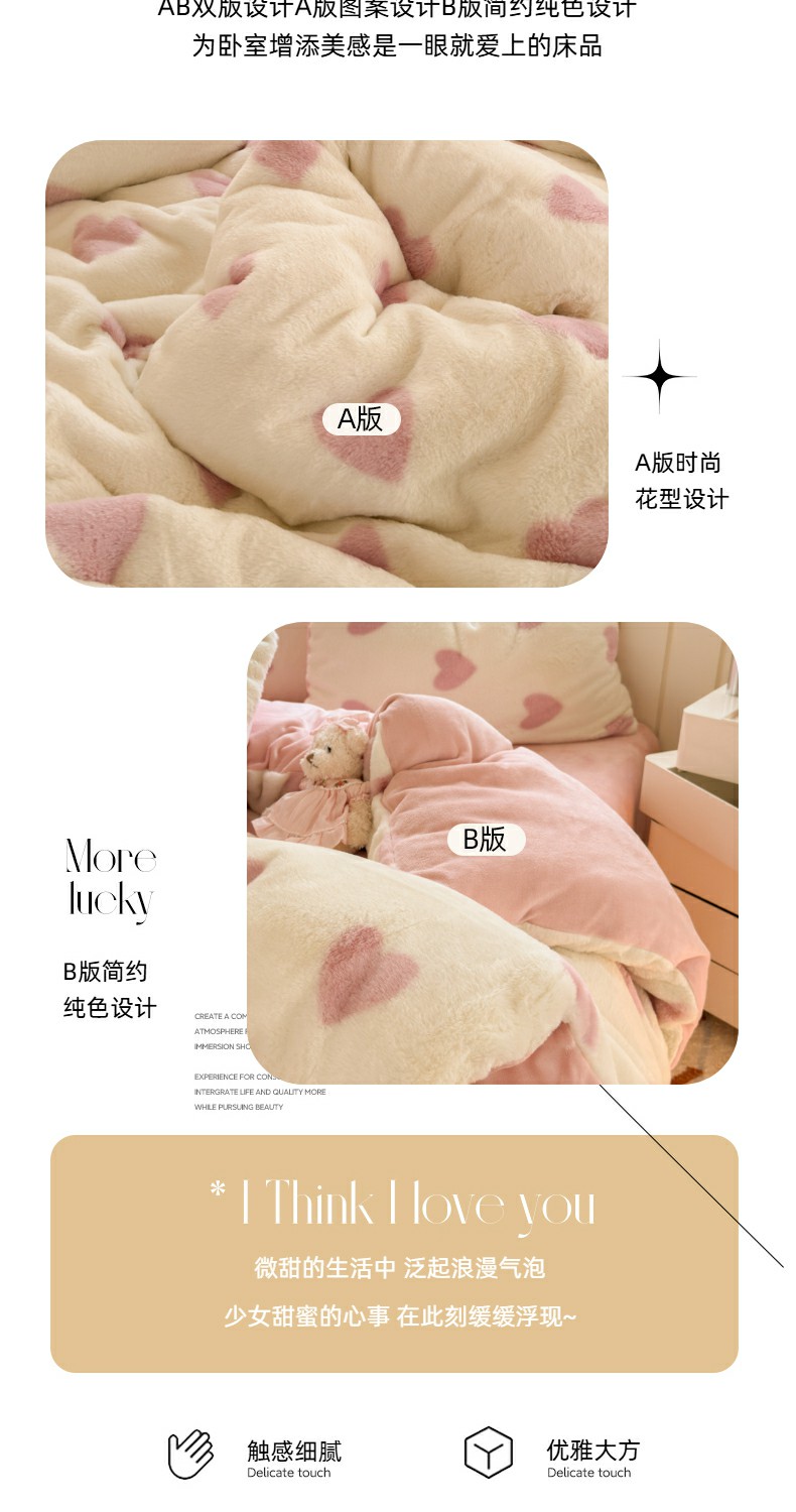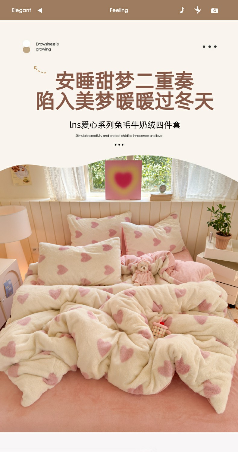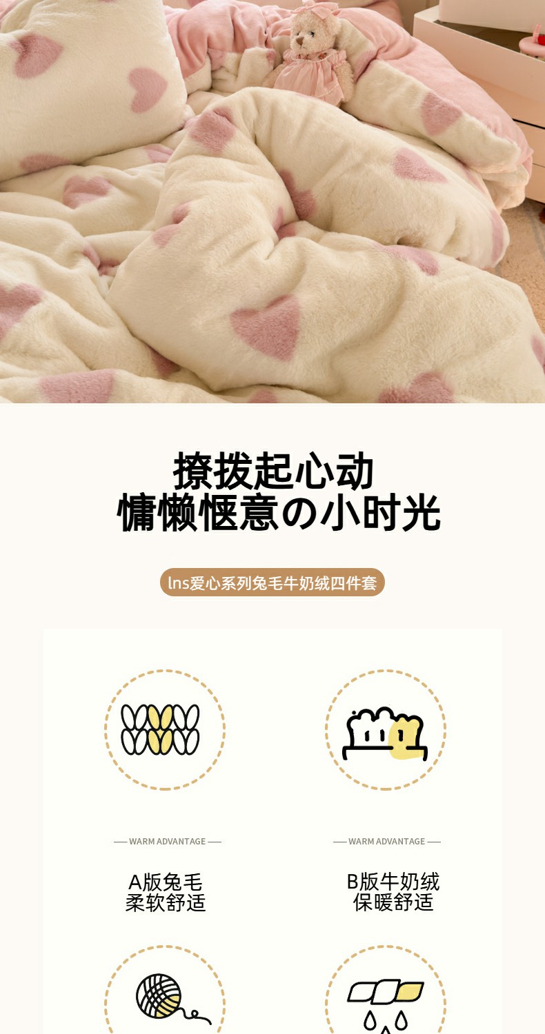 (总)欣宜家纺 2025新款秋冬ins奶油风超暖爱心系列仿兔毛牛奶绒四件套