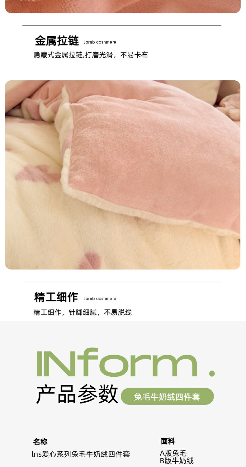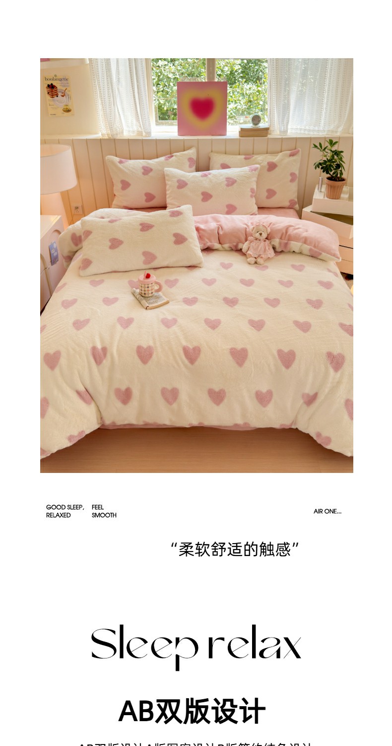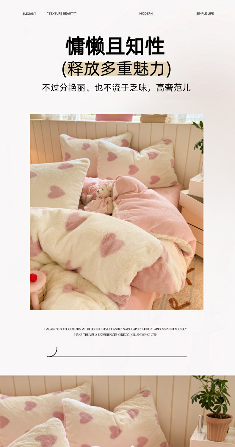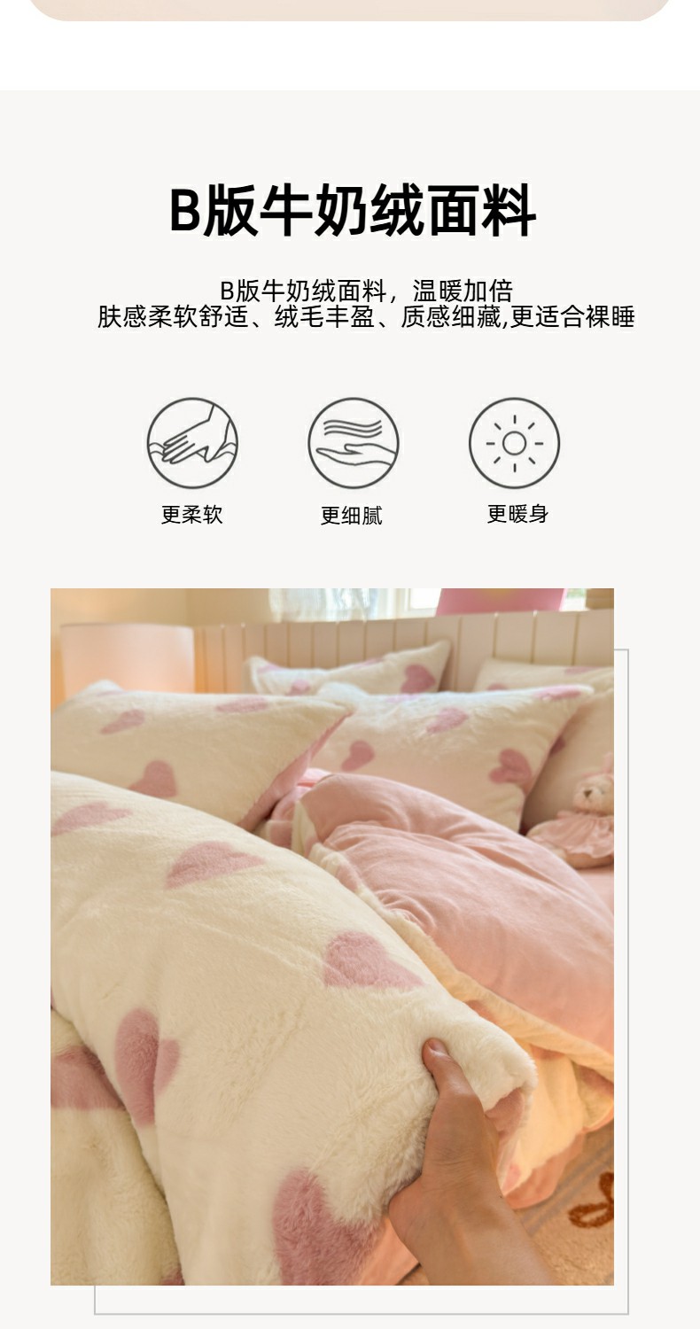 商品名称:(总)欣宜家纺 2025新款秋冬ins奶油风超暖爱心系列仿兔毛牛奶绒四件套