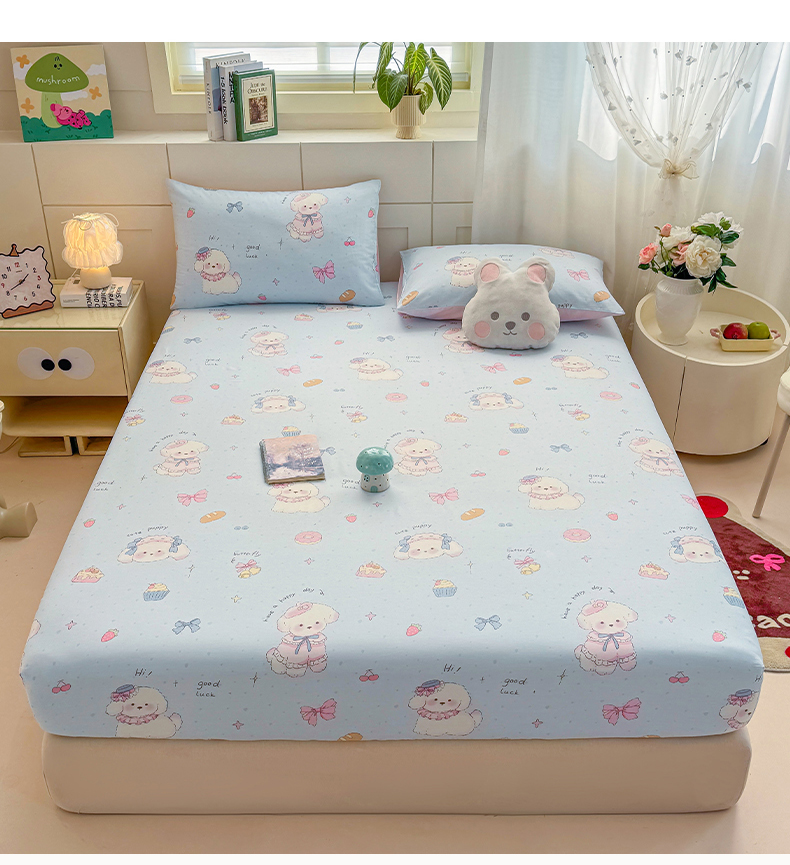 博雅 2025新款全棉床笠小卡通印花床笠 帽子甜心狗
