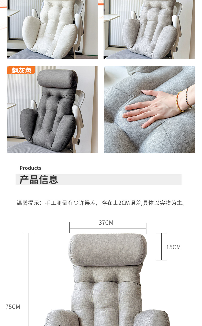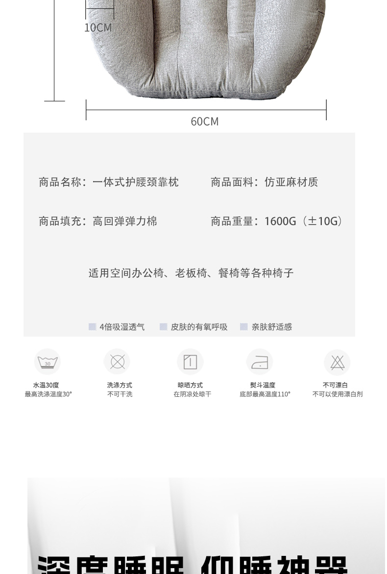 当前位置: 91家纺网 > 商品网购 > 居家日用 > 靠垫/抱枕 > 囍莱家纺 2026新款一体式护腰颈腰靠 烟灰色