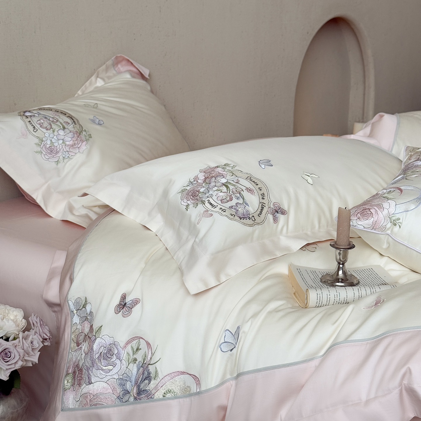 当前位置: 91家纺网 > 商品网购 > 床品套件 > 四件套 > 全棉普通四件套 > MIU缪家居 2026新款亲肤舒适100支全棉四件套-爱丽丝梦境(基础控价431,券后控价388) 爱丽丝梦境-花香粉白