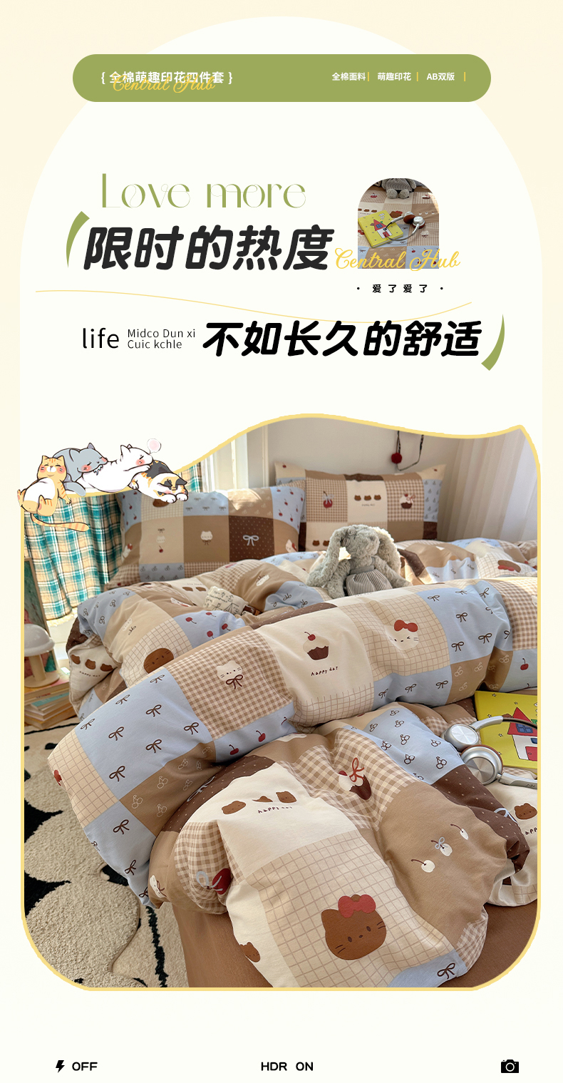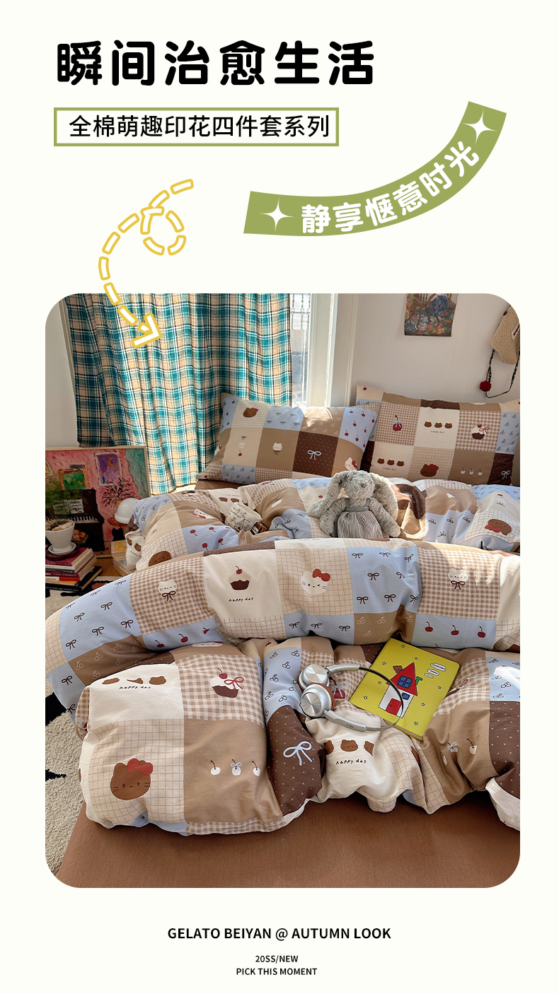 当前位置: 91家纺网 > 商品网购 > 床品套件 > 四件套 > 全棉普通四件套 > 瑞莱 2026新款ing小清新费尔岛全棉四件套 巧克力猫咪