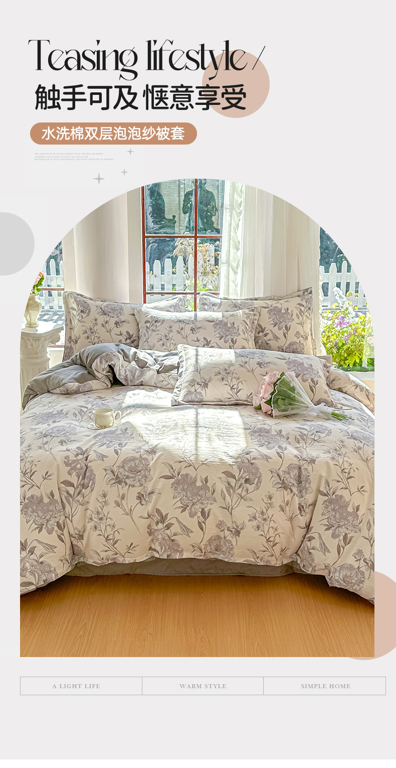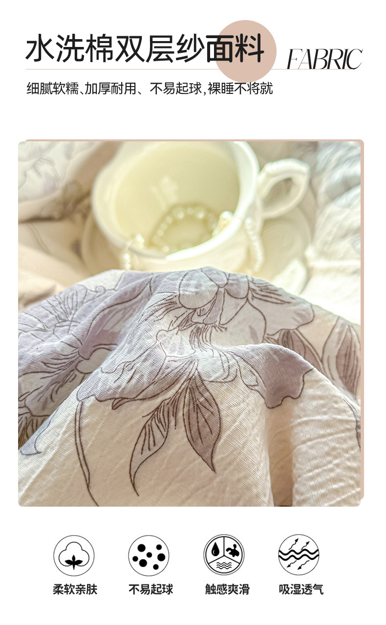 (总)家贝爱 2026新款有氧水洗双层纱被套,镜花水月,恋薇紫,绿野仙踪,木兮,清风晨光,水墨花海,叶倾城,雍容华贵,悠悠花簇,圆梦,枝上蝶舞