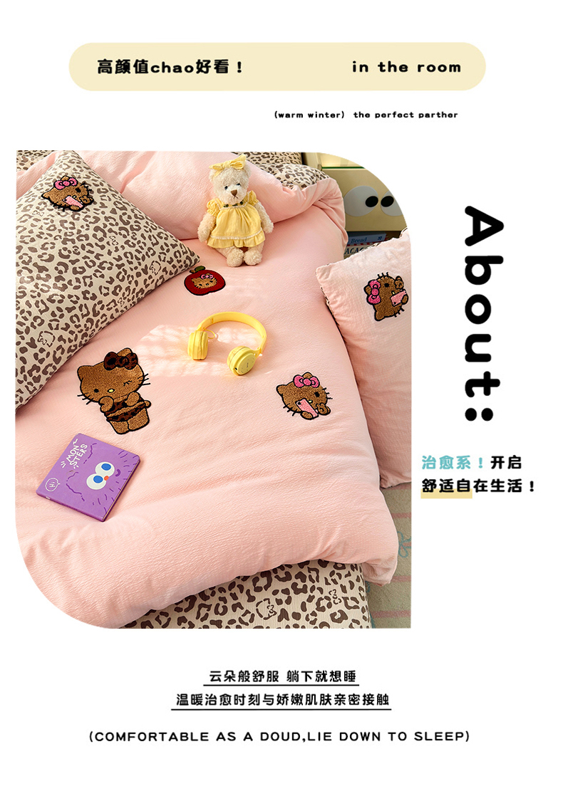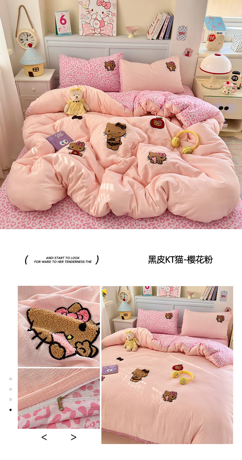 当前位置: 91家纺网 > 商品网购 > 床品套件 > 四件套 > 毛巾绣四件套 > 橙意 2026新款云感双层纱贴布绣四件套-黑皮KT猫 黑皮KT猫-浅粉