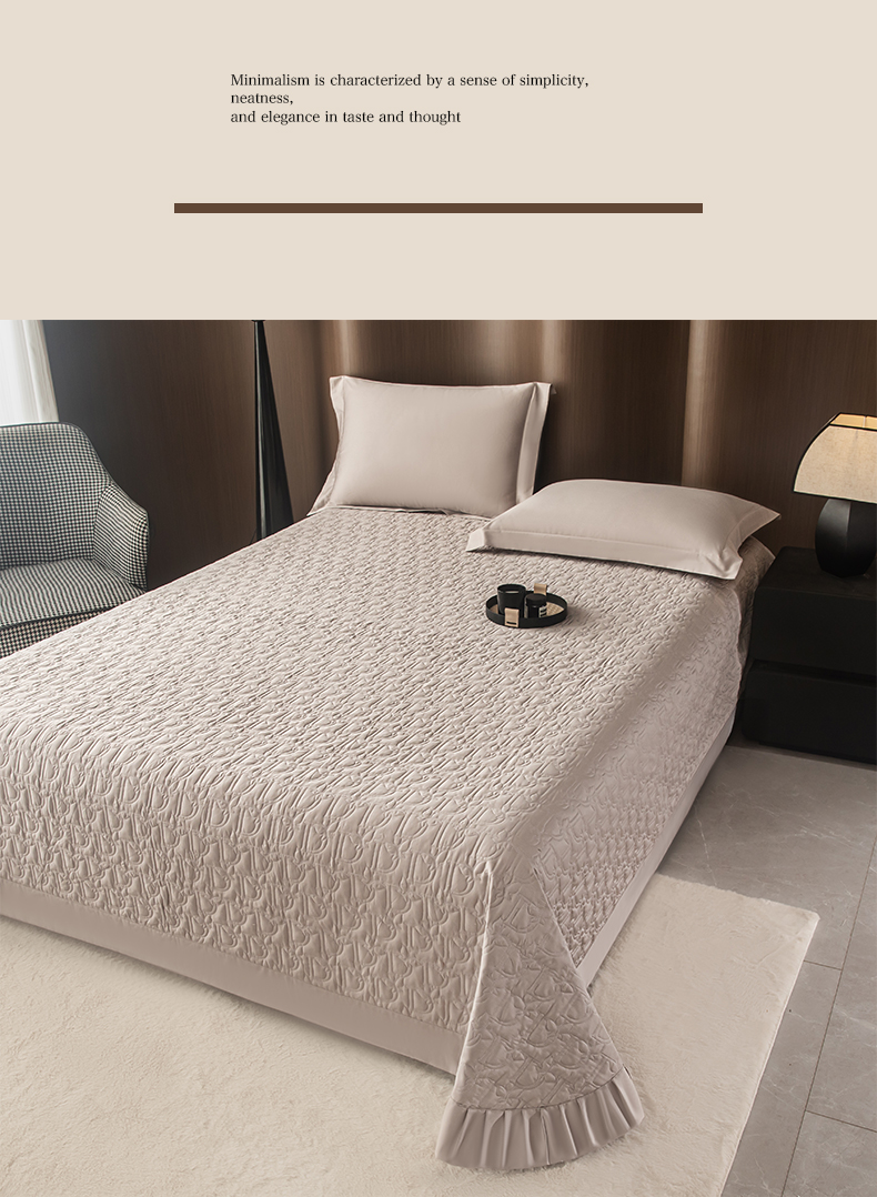 (总)金喜 2024新款高克重全消光牛奶绒雕花绒床盖四件套加厚牛奶绒床盖套件--极简主义床盖套件系列,皮粉,石灰,蔚蓝,杏仁