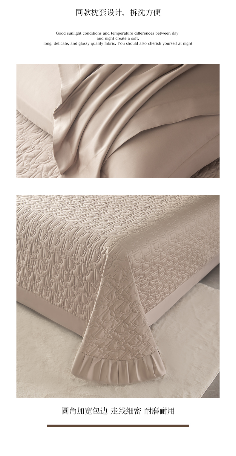 (总)金喜 2024新款100支全棉床盖蚕丝床盖三件套D型绗缝系列,白桃粉,繁花橙,粉雅灰,迷雾金,木槿绿