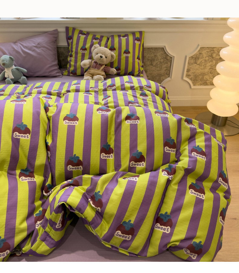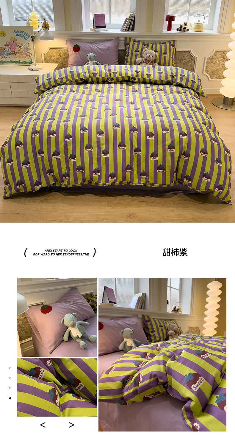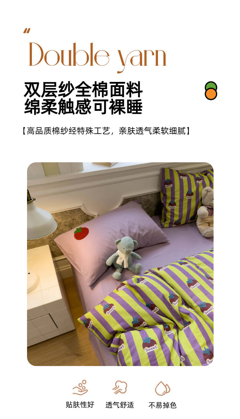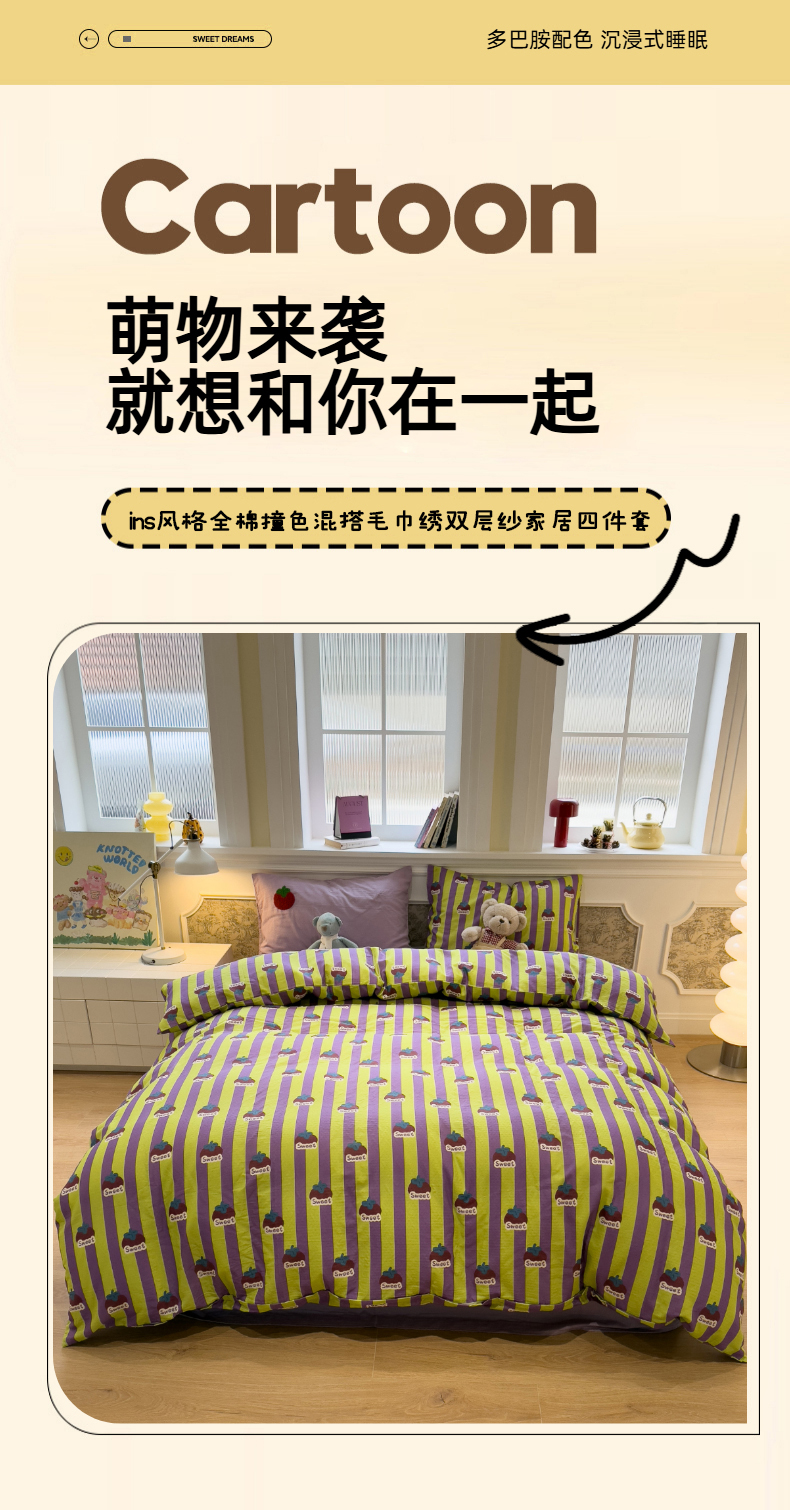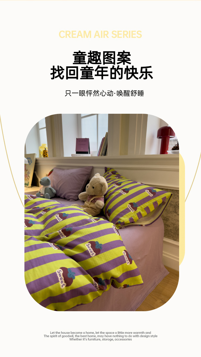 (总)呗旺鹿 2026新款全棉纯棉40支13070卡通印花四件套-场景二,萌星,鼻涕狗,果子象,机灵猫,可爱星人,幸福小熊