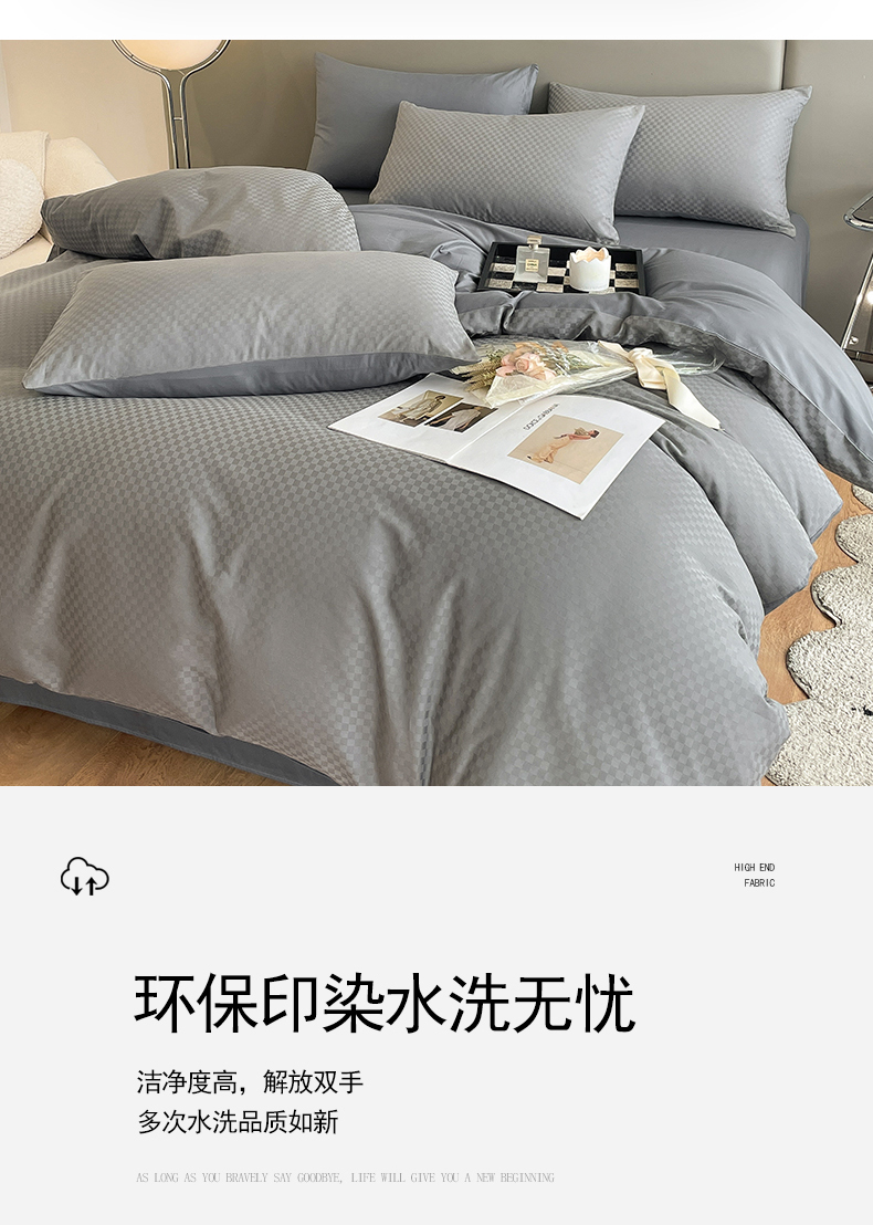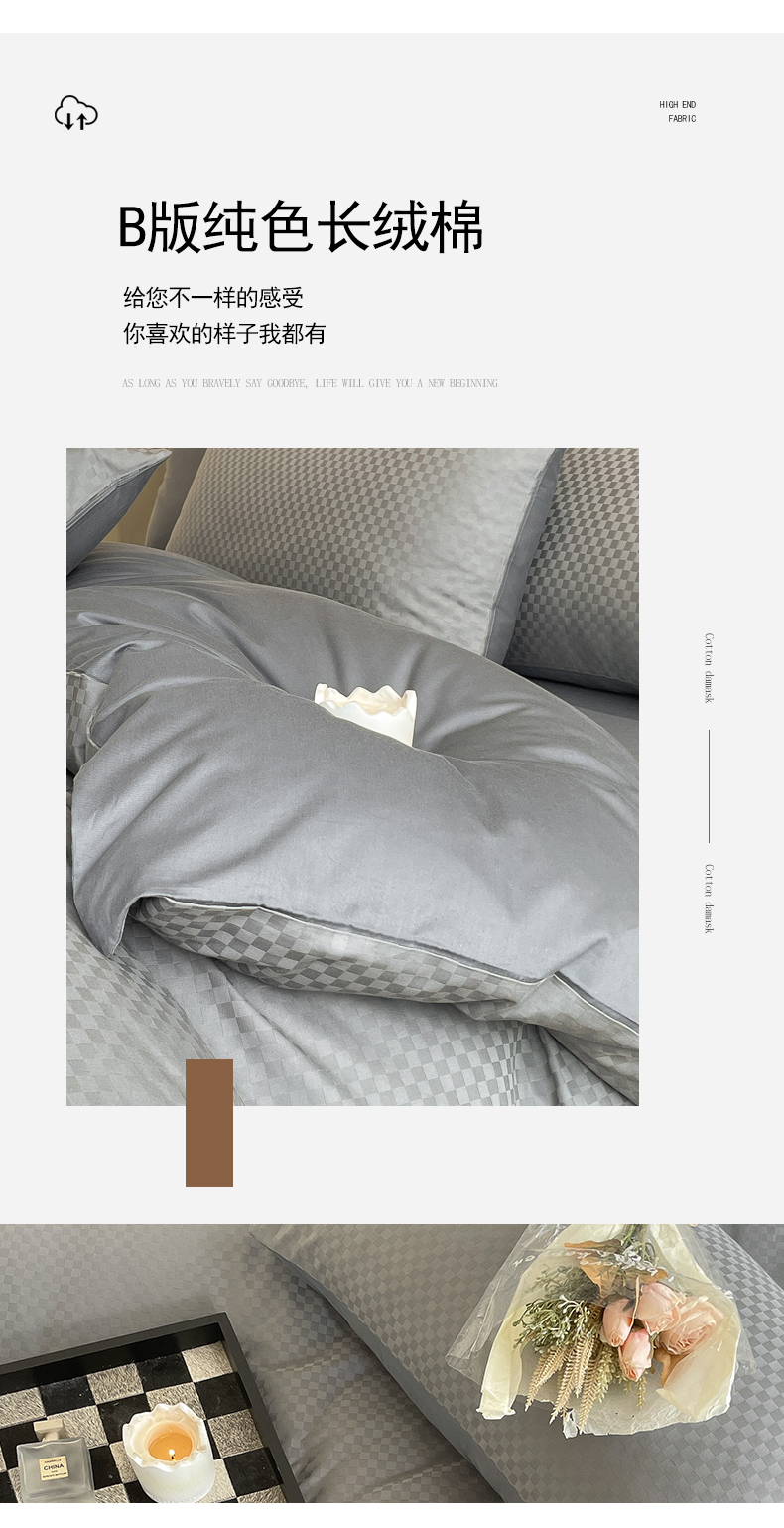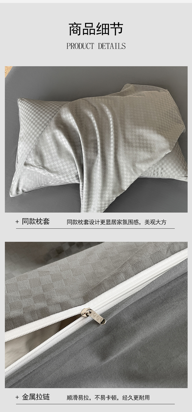 当前位置: 91家纺网 > 商品网购 > 床品套件 > 四件套 > 长绒棉四件套 > 琪格格纺织 2026新款轻奢长绒棉纯棉高级感提花方格酒店名宿居家四件套 60长绒棉-高级灰
