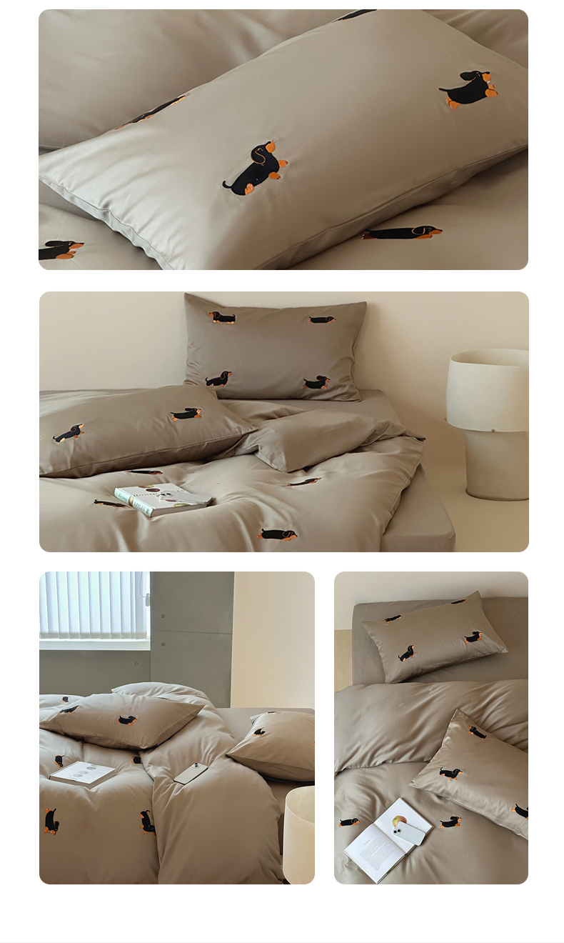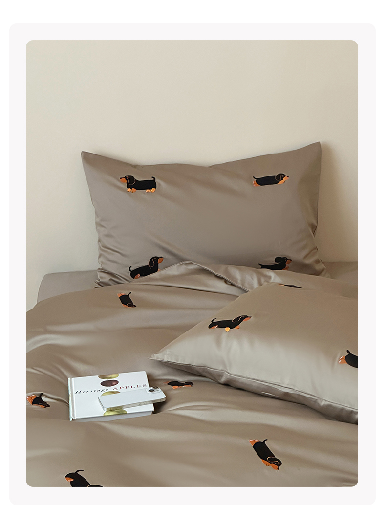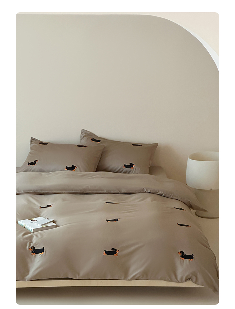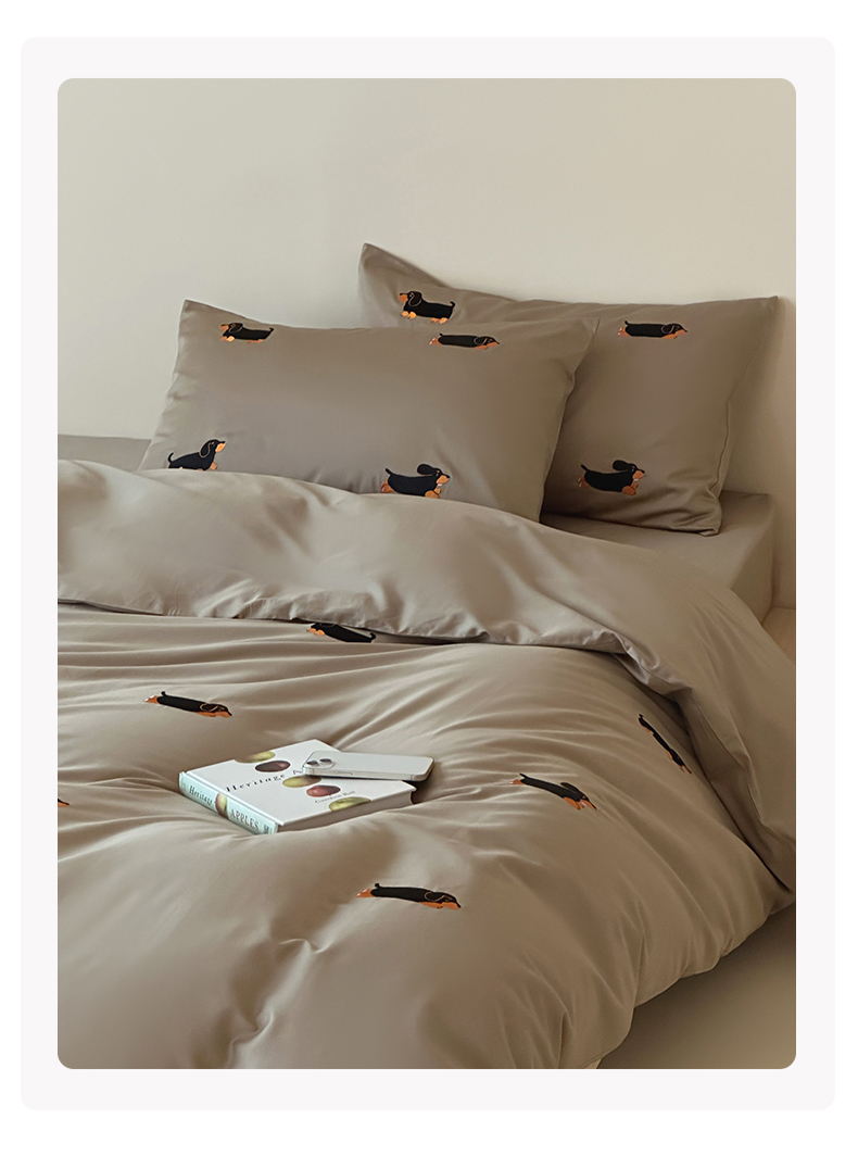 波比可可 2026春夏系列轻奢居家50s长绒棉全棉纯棉四件套小红书热款 灰犬