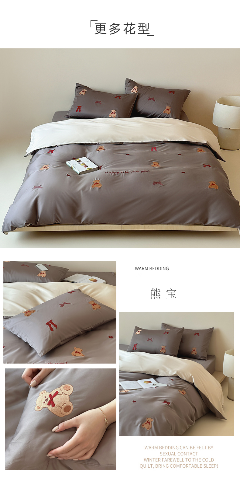 (总)波比可可 2026春夏系列轻奢居家50s长绒棉全棉纯棉四件套小红书热款,灰犬,星蓝,杏序,熊宝,紫趣