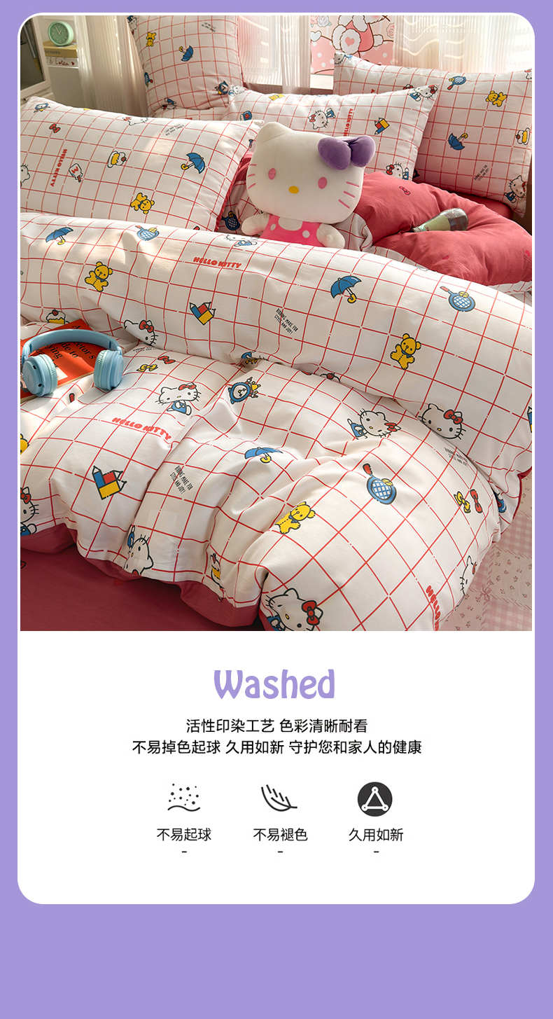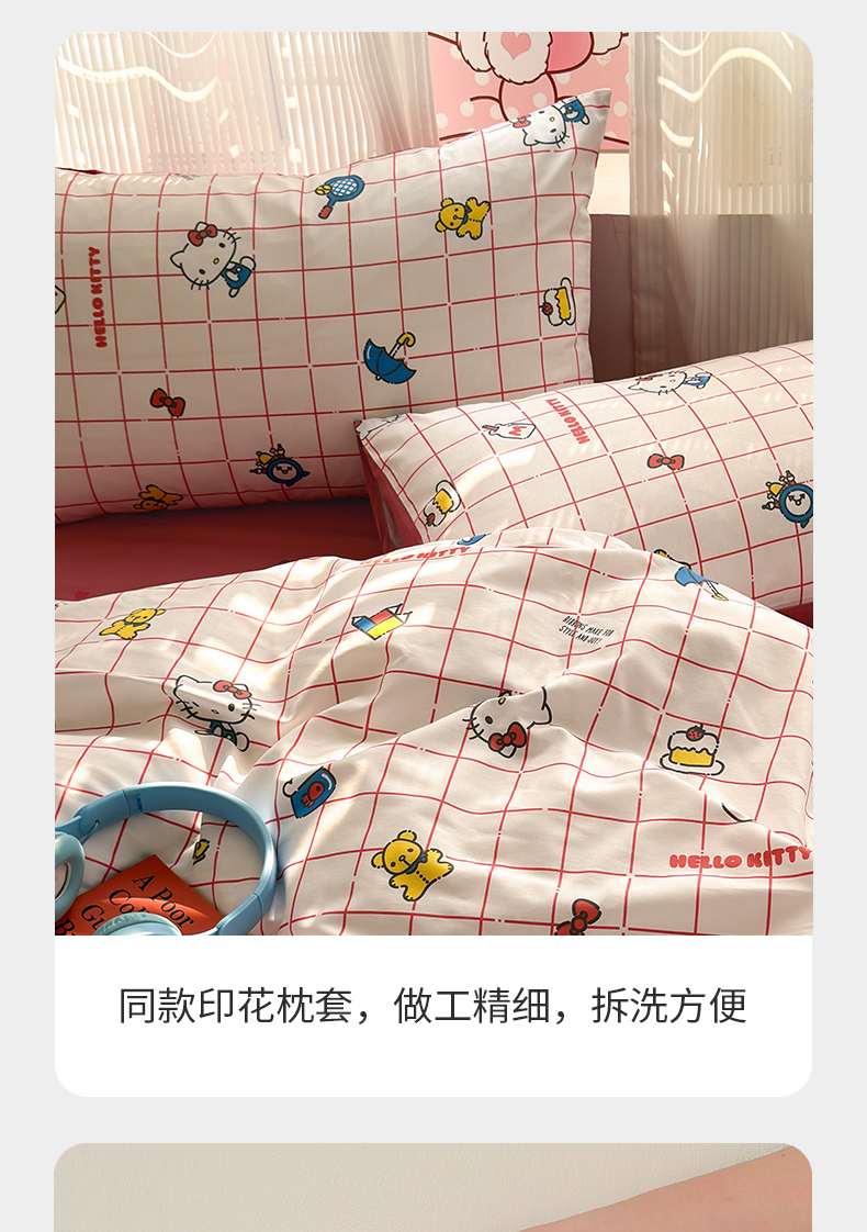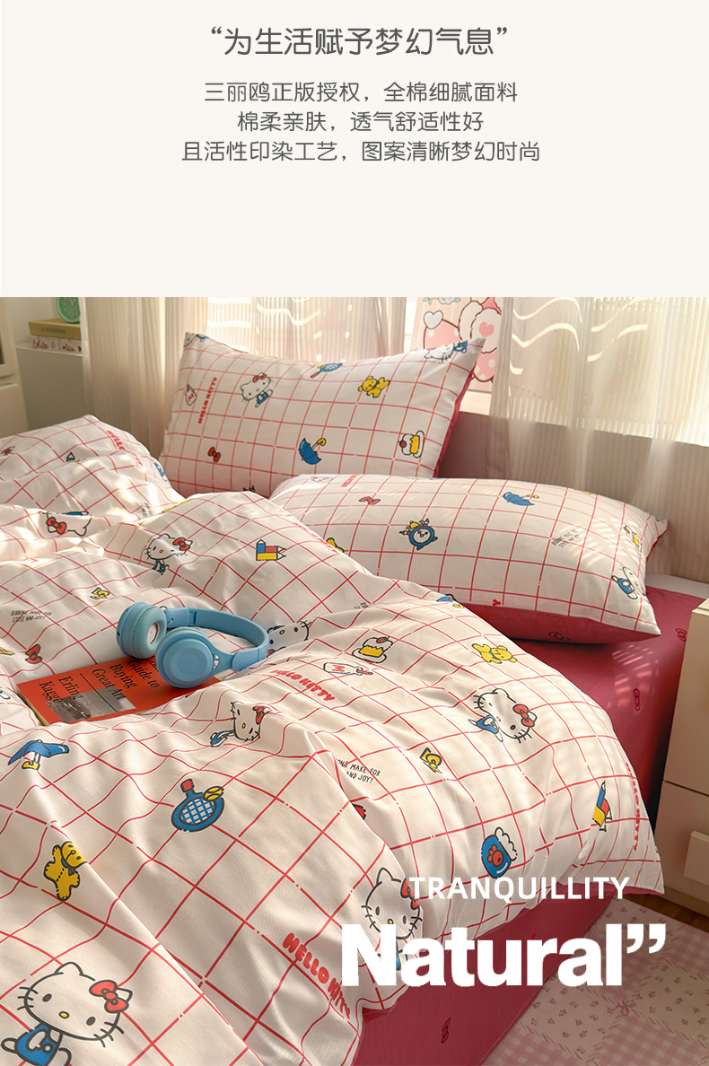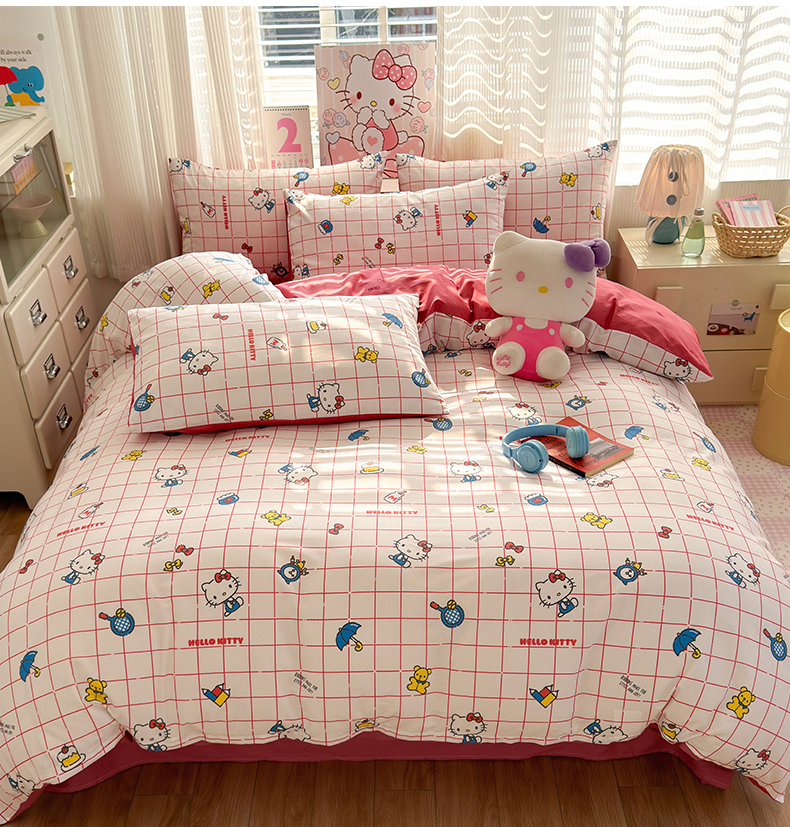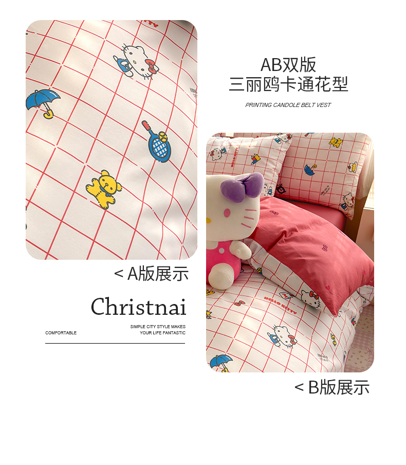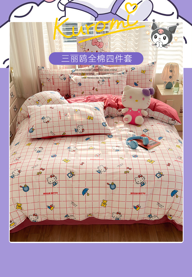 商品名称:曼之夏 2026新款全棉三丽鸥正版授权卡通四件套 运动凯蒂