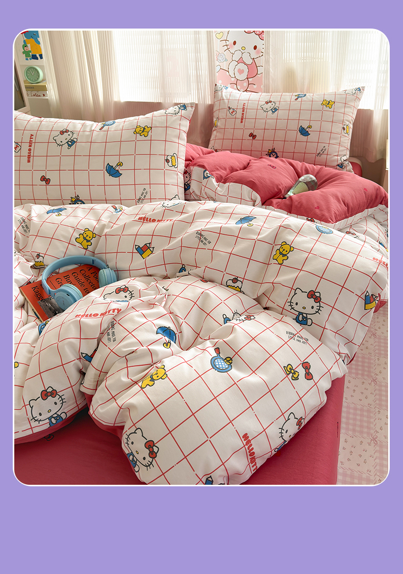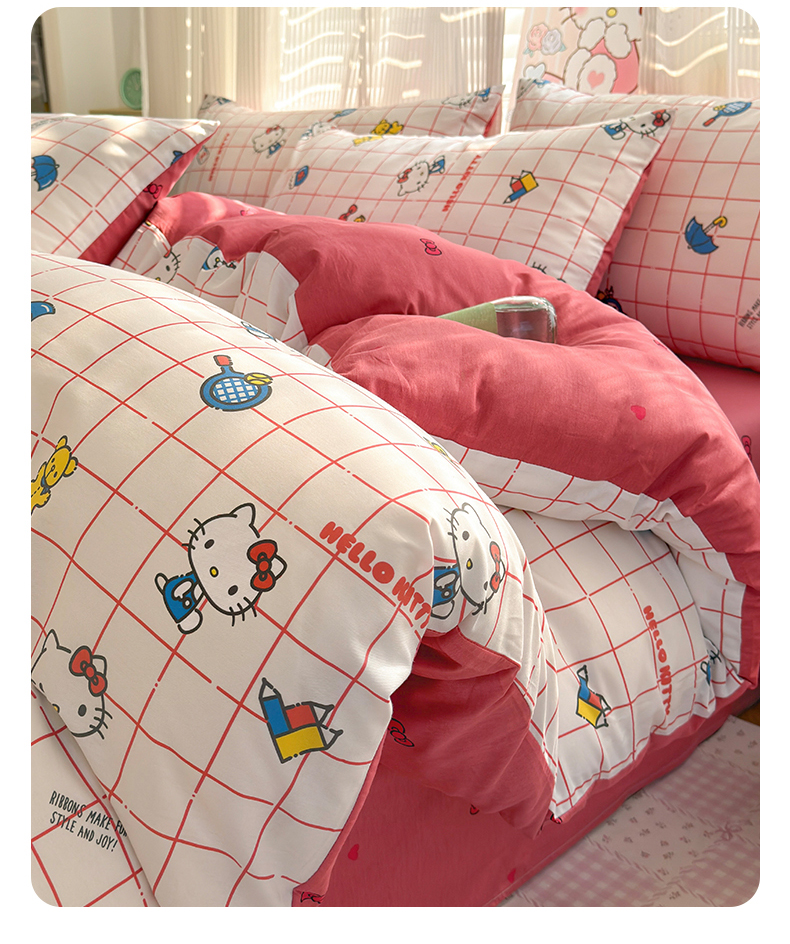 (总)曼之夏 2026新款全棉三丽鸥正版授权卡通四件套,波点美乐蒂,电话凯蒂,都市凯蒂,红格凯蒂,蝴蝶结大耳狗,凯蒂果果,蘑菇凯蒂,牛奶凯蒂,甜甜凯蒂,晚安大耳狗,樱桃凯蒂,游乐园大耳狗,元气美乐蒂,运动凯蒂