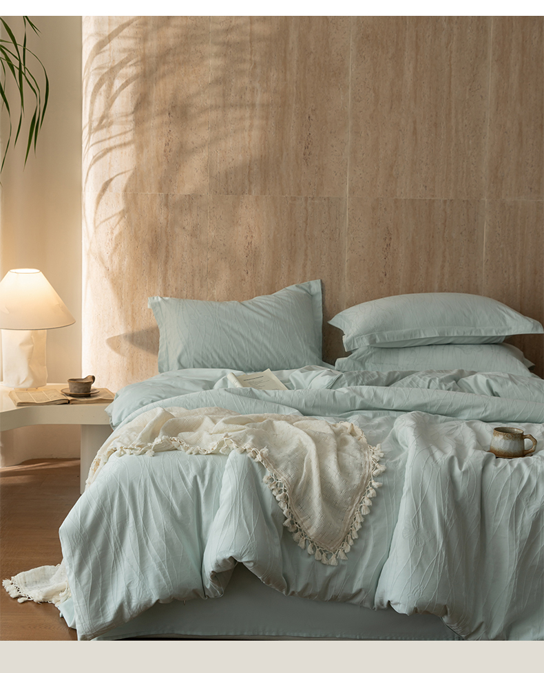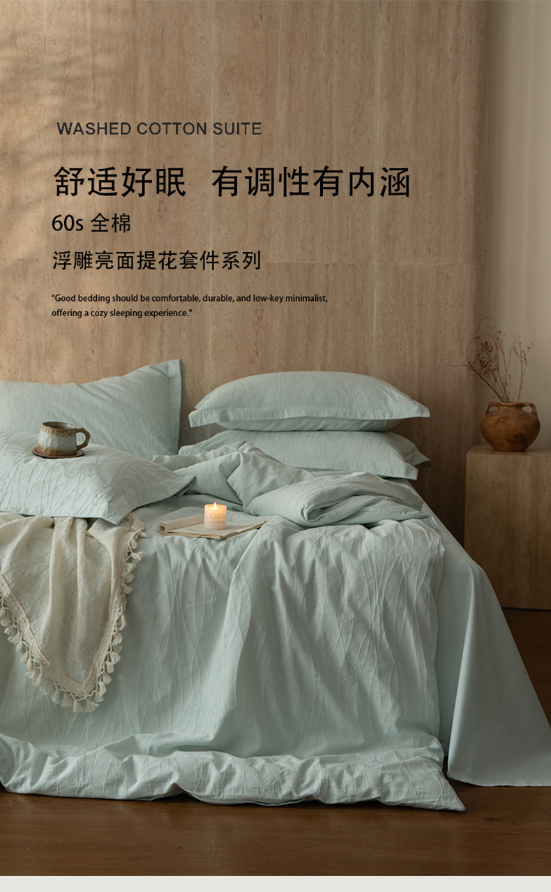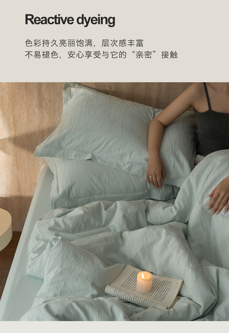 当前位置: 91家纺网 > 商品网购 > 床品套件 > 四件套 > 全棉普通四件套 > 爱思佳 2026新款A类全棉60s浮雕亮面提花系列四件套 蝶梦蓝