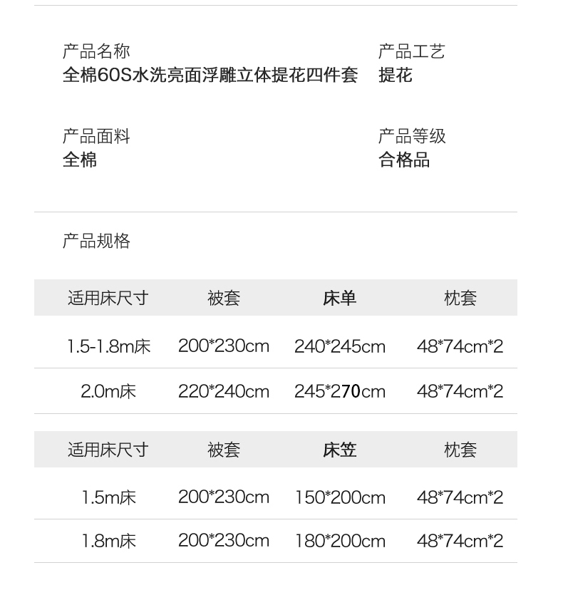 1.8m床笠款四件套 | ¥155.00 |