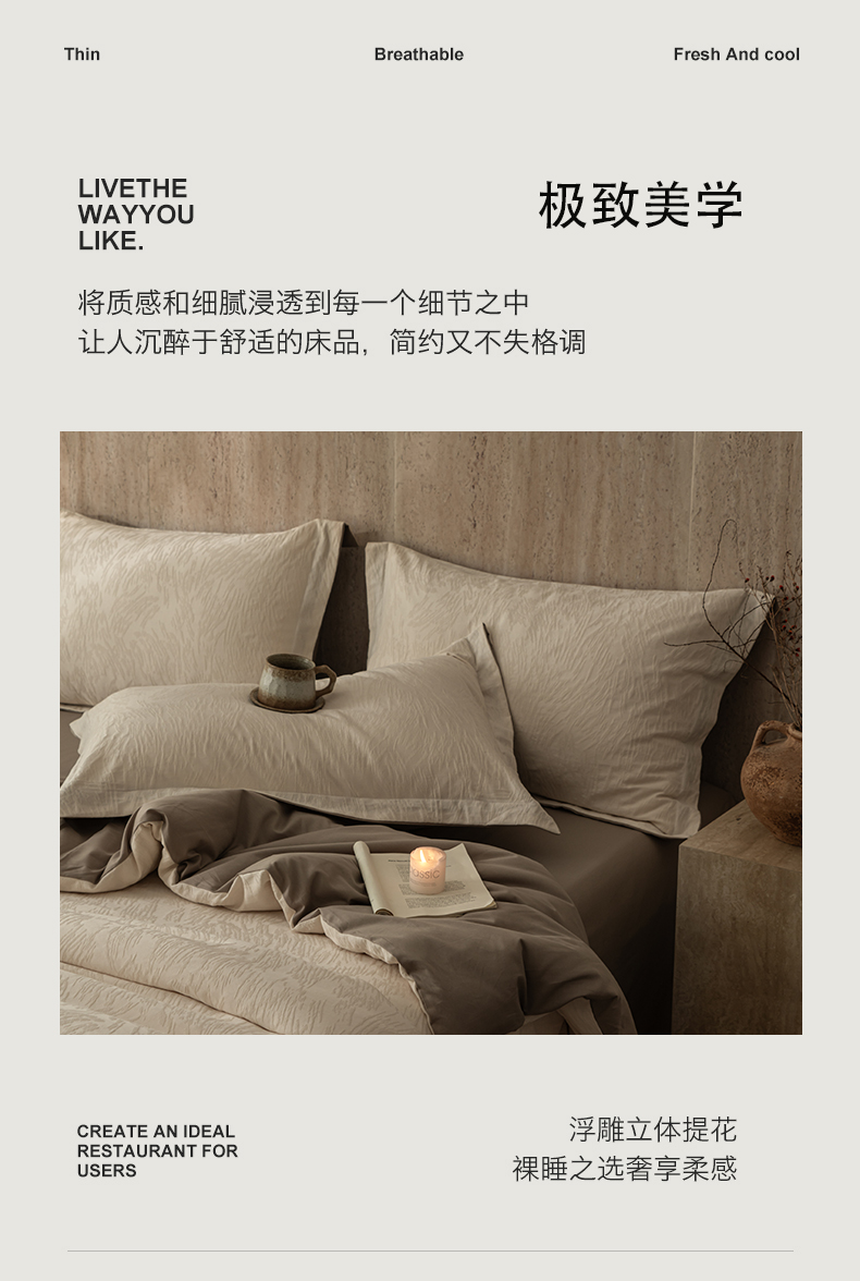 当前位置: 91家纺网 > 商品网购 > 床品套件 > 四件套 > 全棉普通四件套 > 爱思佳 2026新款A类全棉60s浮雕亮面提花系列四件套 组合