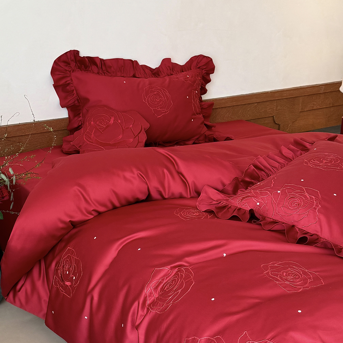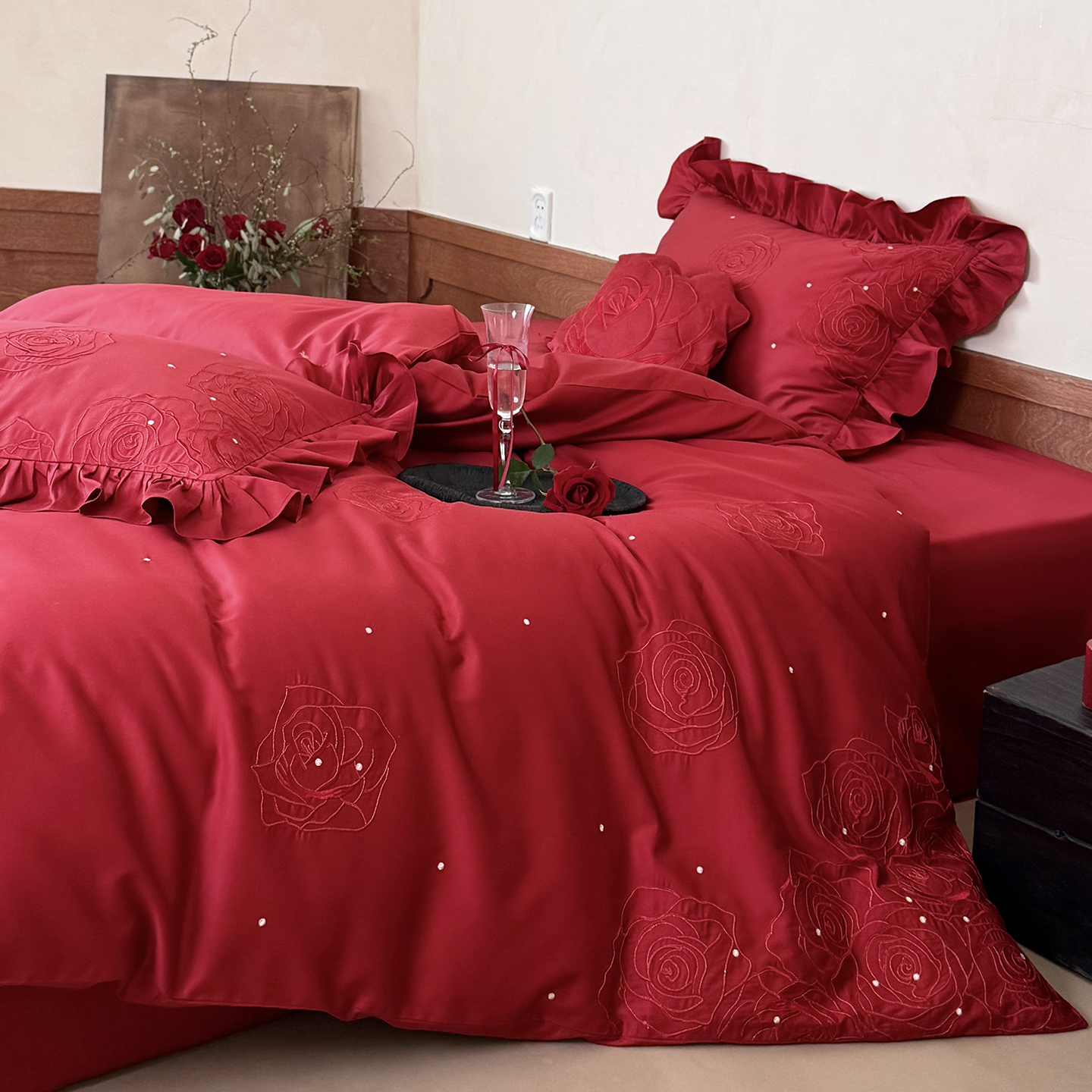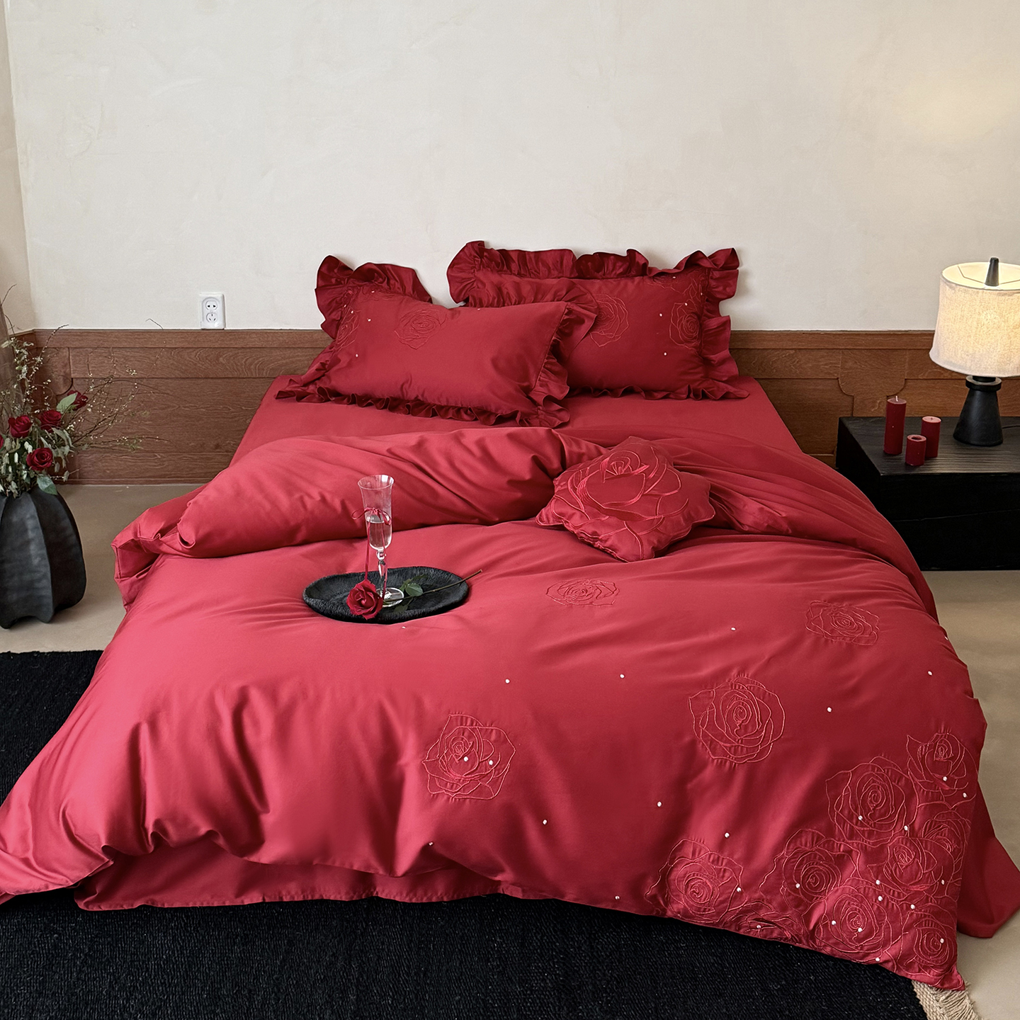 当前位置: 91家纺网 > 商品网购 > 床品套件 > 四件套 > 长绒棉四件套 > (总)鹿班家居 2026春季新品100S长绒棉精密刺绣系列四件套-玫瑰祈愿(标准会员-20元)