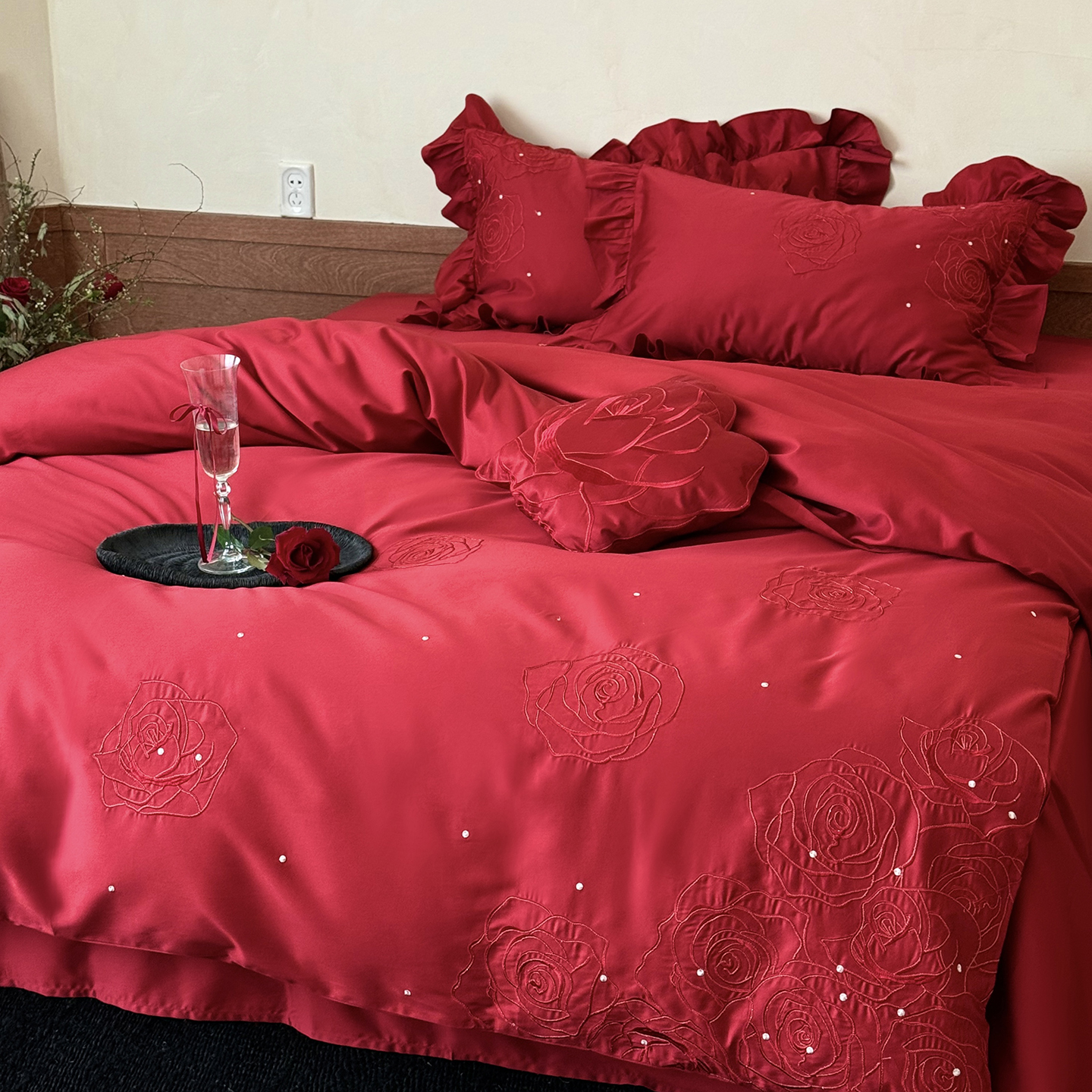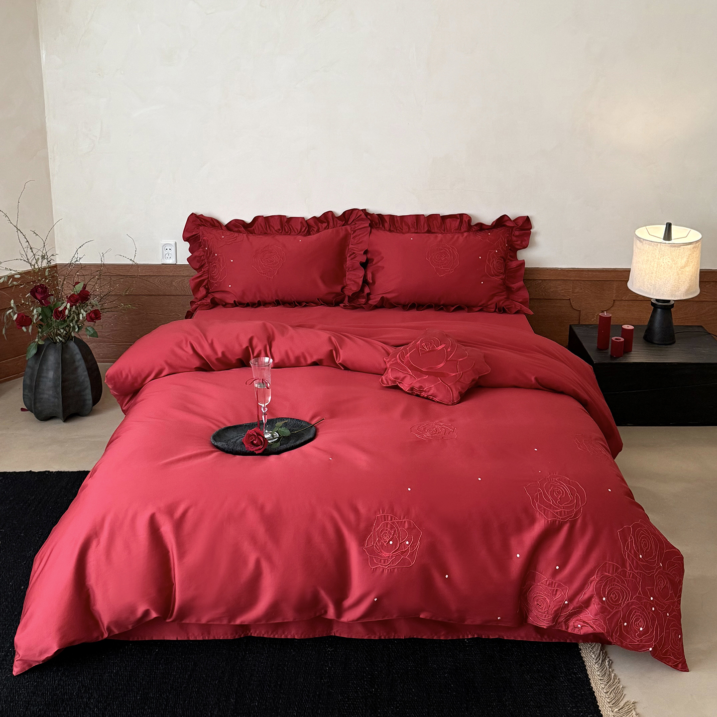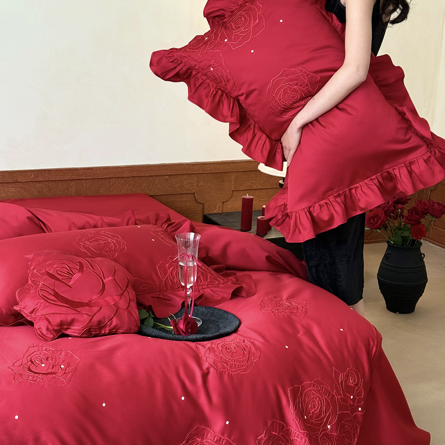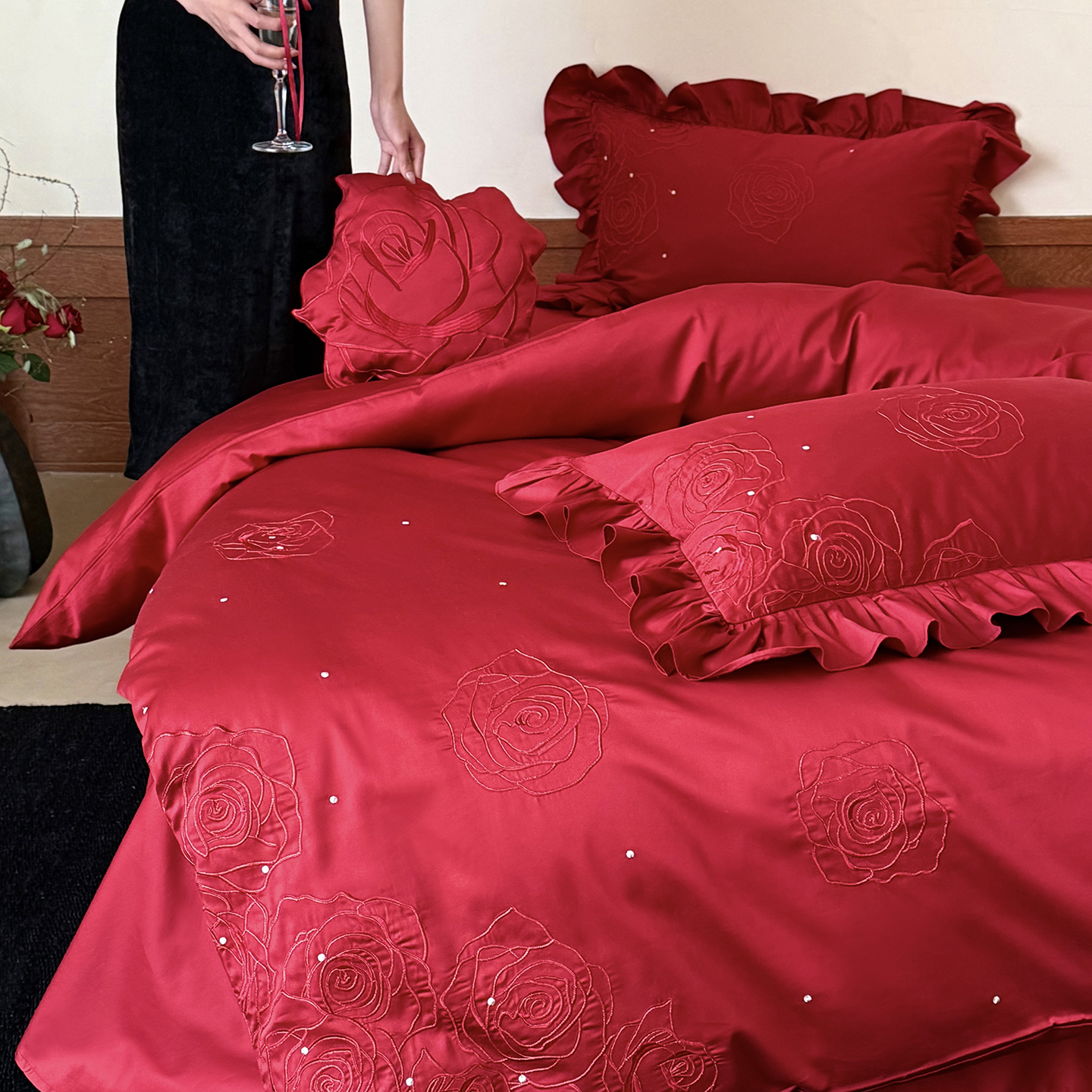 当前位置: 91家纺网 > 商品网购 > 床品套件 > 四件套 > 长绒棉四件套 > (总)鹿班家居 2026春季新品100S长绒棉精密刺绣系列四件套-玫瑰祈愿(标准会员-20元)