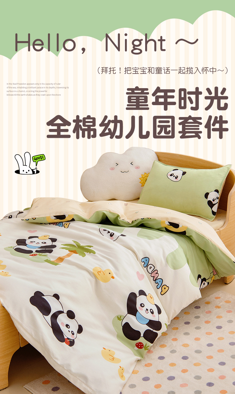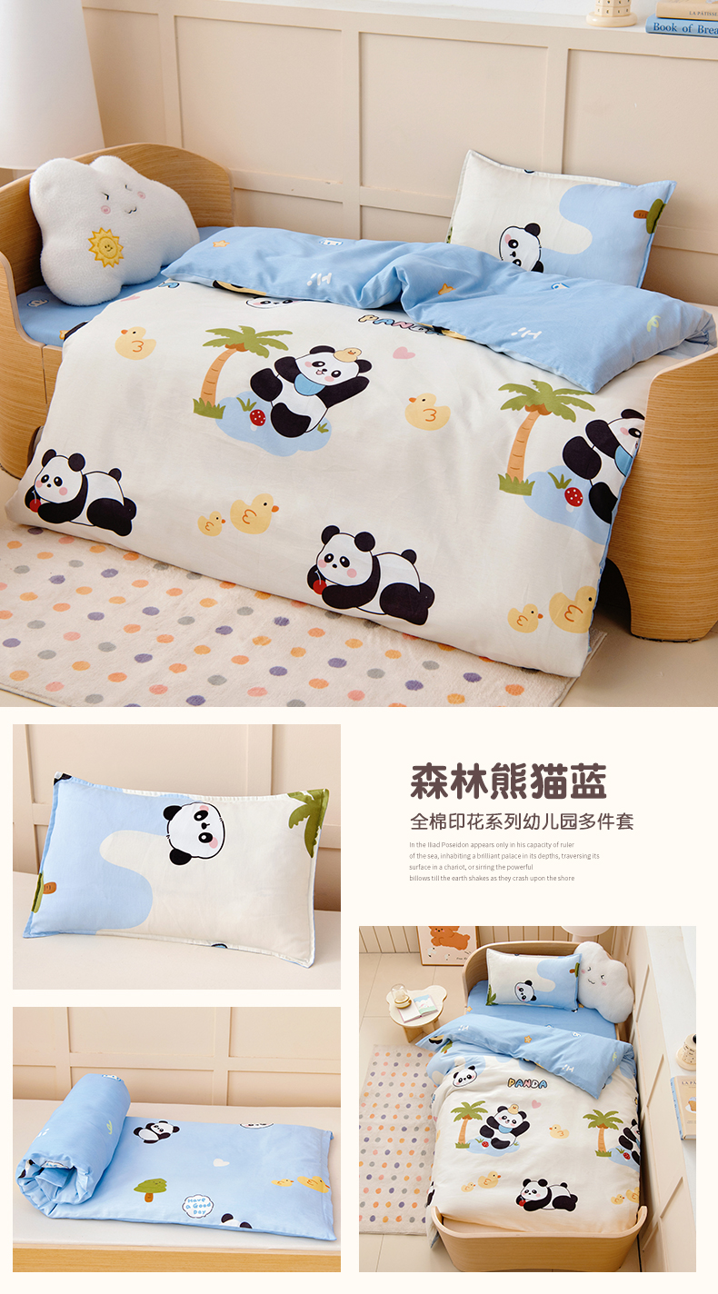 当前位置: 91家纺网 > 商品网购 > 床品套件 > 四件套 > 全棉普通四件套 > 鱼宝 2026新款全棉纯棉幼儿园套件-星愿系列 森林熊猫蓝