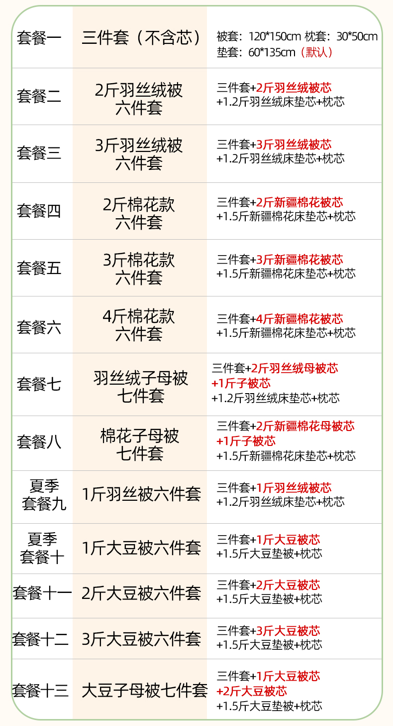 3斤丝绵六件套 | ¥88.00 |