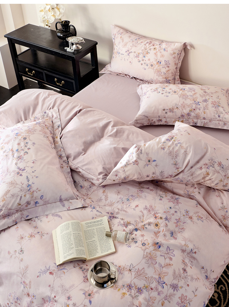 (总)由丽家纺 2025新款亲肤舒适全棉纯棉臻棉数码印花四件套系列,繁花似锦,感棉-粉,金溪-灰,金溪-咖,茂林-兰,明羽-黄,沐恩-绿,野玫瑰-紫,感棉-绿,玫瑰颂-粉